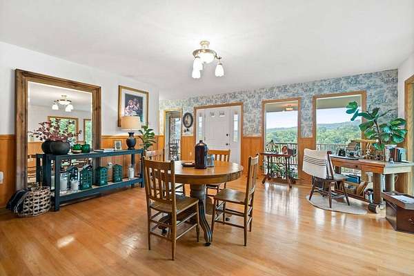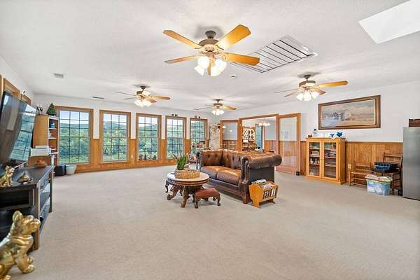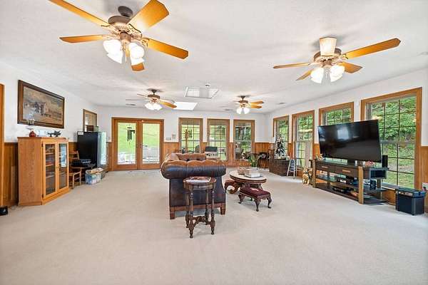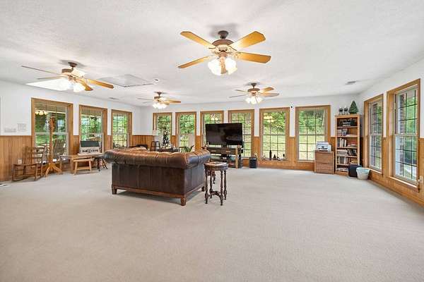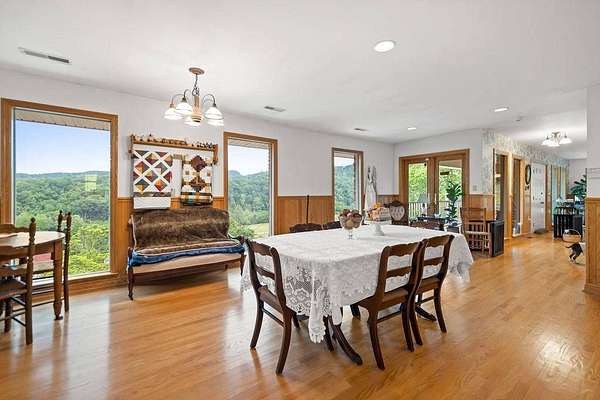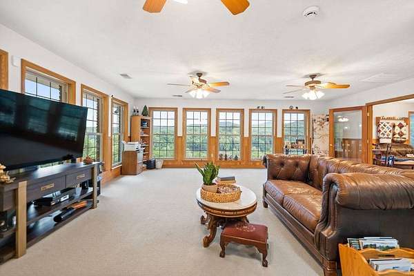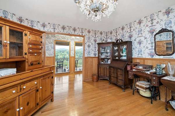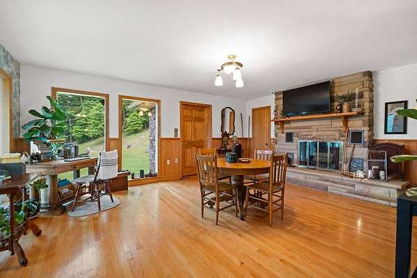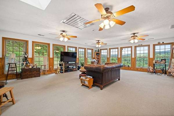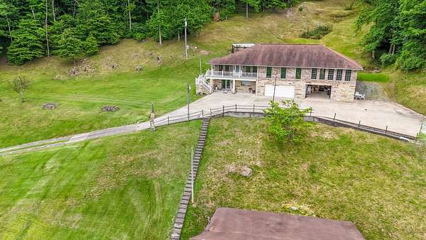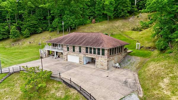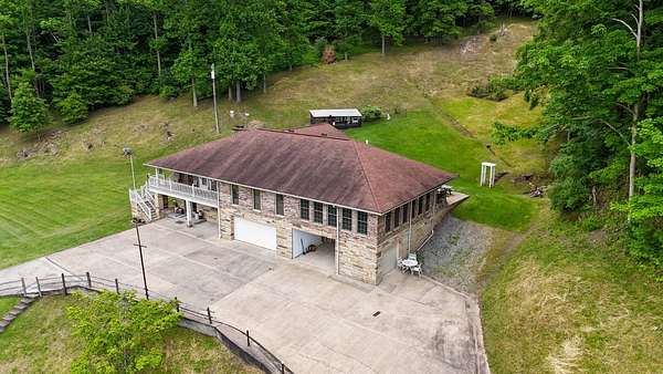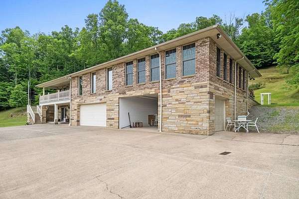 Sitting atop & overlooking the town of Gassaway, WV you'll find this stately home w/ beautiful sunset views on 35.12+- acres! The very well-maintained 2 level home boasts 4,831 sq+ ft of living area w/ 3 bedrooms, 2 full baths, living, dining & sun room, large family room, laundry & adjacent storage rooms, 3 garages, enclosed carport, elevator & large 2 level 2400 sq ft barn w/ workshop. The workshop includes a liveable space with a kitchen,bathroom, and washer/dryer. The property has had many upgrades throughout the years that include a whole-house Generac generator, energy-efficient heated flooring, hardwood floors, security system & Nutone whole-house intercom system. Entrances are available from both the 1st & 2nd levels of the home. Entering from 1st level you'll find a cozy den/family room + gas fireplace, access to a 2 car garage & an elevator to go between 2 levels in the home, laundry room, full bathroom, large storage rooms. The 2nd floor of the home includes 3 bedrooms w/ closets, bathroom, living/parlor room + gas fireplace, dining room, open concept kitchen & large beautiful sunroom w/ patio off the back of it. The primary bedroom features 2 large closets + screened-in porch overlooking the beautiful backyard. The grounds around the property contain a large patio area perfect for entertaining, chicken coop & large workshop barn building w/ an upstairs living area. Below the home, an additional bonus lot is found with utility hookups. The acreage contains many mature woods & walking trails throughout. In the Braxton County area, this beautiful upgraded home is a rare find, offering many ample spaces for homesteading and gardening. Walking distance to Davis Elementary, the Elk River Rail Trail, 4 Miles to I-79 & 55 mins to Charleston Yeager Airport. Virtual Tour included.