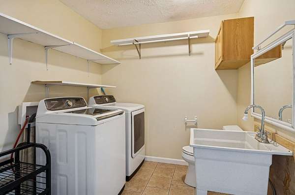 - Cooktop, Dishwasher, Dryer, Electric Oven, Microwave, Refrigerator, Stainless Steel Appliance(s), Washer