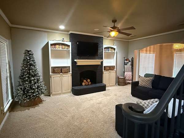Est $2,159/moRare Find! Located on Top of a Hill is a Nice Custom Built Two Story Brick, Inviting Front Porch, 3 BR, 2-1/2 Bath, Neat LR with WBFP & Built-In Shelving, Sep DR, Great Kitchen with Granite & Eating Bar, Pantry, Large Bonus Room - Playroom/Gameroom/Office, Primary BR is Down, Primary Bath has Soaking Tub & Nice Sep Shower; Other Bedrooms, Full Bathroom & Bonus Room are Up! Rear Patio Doors lead out to great in-ground pool with slide, deck with relaxing sitting area; Dbl Attached Garage, Rear Yard Fenced for larger dogs; Also Part of the property is separately fenced for horses, with some covered shelter.