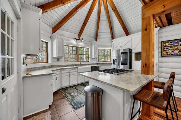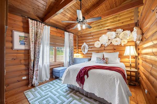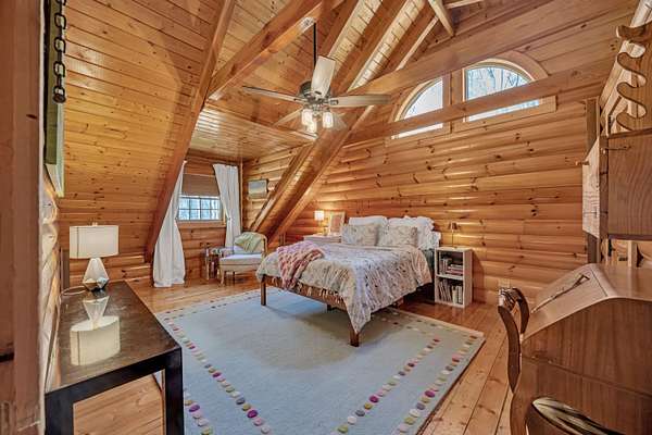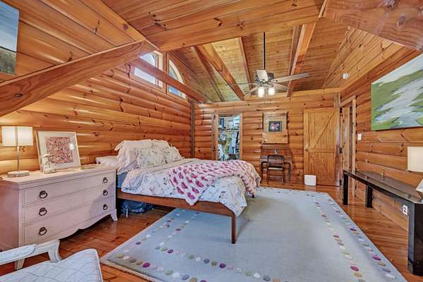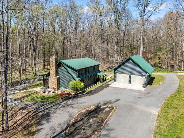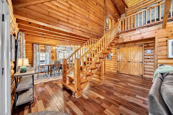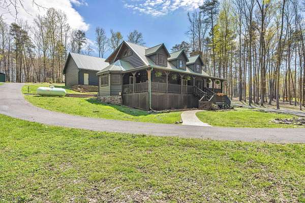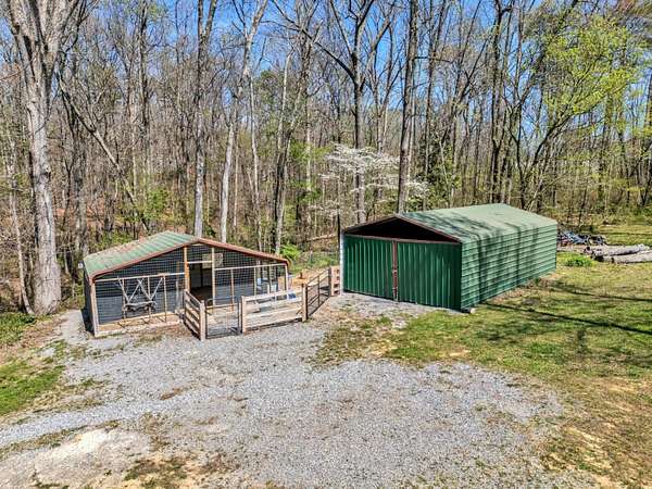 This isn't just a property--it's a life built for you. Tucked into 13 heavily forested acres with a year-round creek, this private log cabin homestead is move-in ready for the self-sufficient life you've dreamed of. Just 35 minutes from Chattanooga, you're close to everything and far from all of it. The land has been thoughtfully developed over the past three years into a true plug-and-play homestead. A converted parking space now serves as a functioning chicken coop with a pump, sink, and dedicated water access, complemented by a fenced dog run and solar-powered entrance gate. The barn features new shelving for tools and feed, and the house perimeter has been cleared to open the property while preserving privacy. Inside, the cabin features intentional, high-quality upgrades. Indoor and outdoor wood-burning fireplaces with stone chimneys anchor the home, leading to a giant deck and stone pad designed for evenings by the creek. The kitchen remodel includes quartzite countertops, a farmhouse sink, an unlacquered brass bridge faucet, and Farrow & Ball premium paint. The guest bedroom addition features wood to the ceiling, while new copper light fixtures, fresh stain, and a garage with a massive storage attic enhance the curb appeal. For peace of mind, a Core Lock storm shelter has already been installed in the garage. The land itself does the rest: forests, a creek, a garden plot, and a quiet that's genuinely hard to find this close to a city. Everything here was designed with care and intention. It's ready for its next chapter.