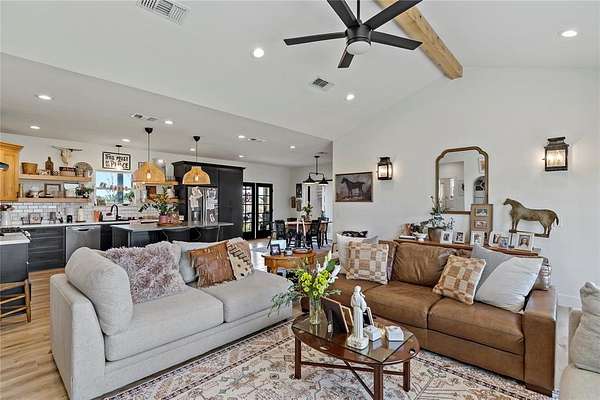 Step into this beautifully designed 3-bedroom, 2-bath home offering 1,664 sq ft of open-concept living, built in 2020 with a warm farmhouse feel. The spacious living area features vaulted ceilings and seamless flow into the kitchen and dining spaces -- perfect for entertaining. The kitchen is a chef's dream, complete with a gas range, center island, and plenty of counter space.