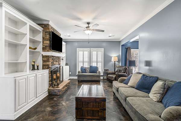 Watch wildlife from your back porch or unwind beside your private in-ground pool at this beautiful property just outside Wynne city limits on Crowley’s Ridge. Situated on 3 acres and accessed by a paved road, the home welcomes you with a large circle drive and peaceful surroundings. This 3,100 sq ft home offers 5 bedrooms and 3 full baths. The main level features the primary suite plus two guest bedrooms. Upstairs includes a spacious bonus room, two additional bedrooms, and a full bath. Built in 2005, the home is primarily all-electric with two gas log fireplaces for added comfort. The primary suite includes double vanities, a separate tub and shower, and a large walk-in closet. The kitchen offers granite countertops, ample cabinetry, and stainless steel appliances. You’ll also appreciate built-ins, generous storage, and abundant natural light throughout. Outdoors, enjoy the pool area and a 20x20 workshop. A great opportunity to personalize and make it your own. This is a summertime dream home! Don't miss it!