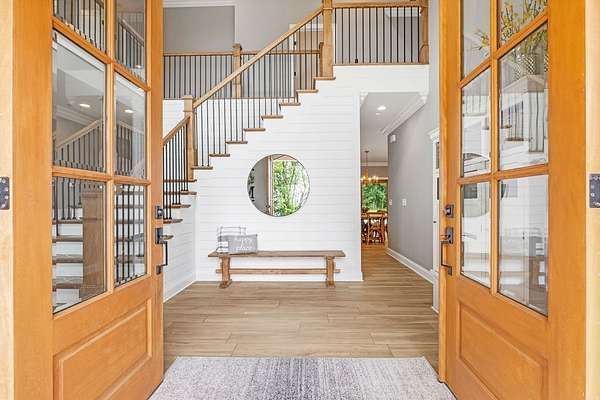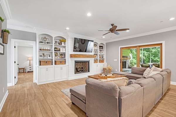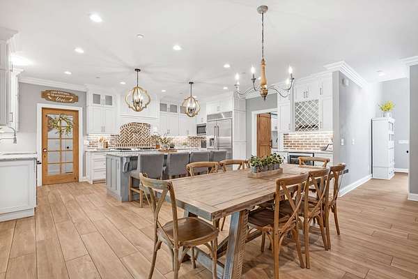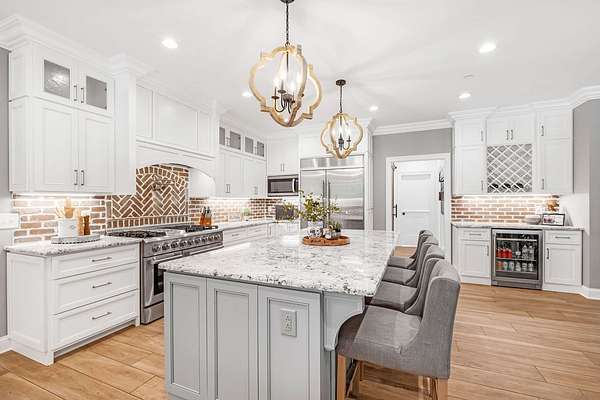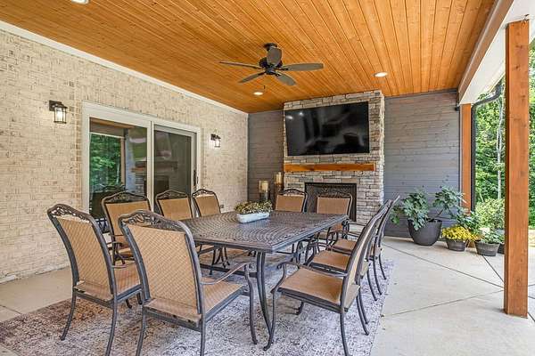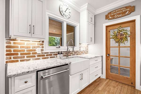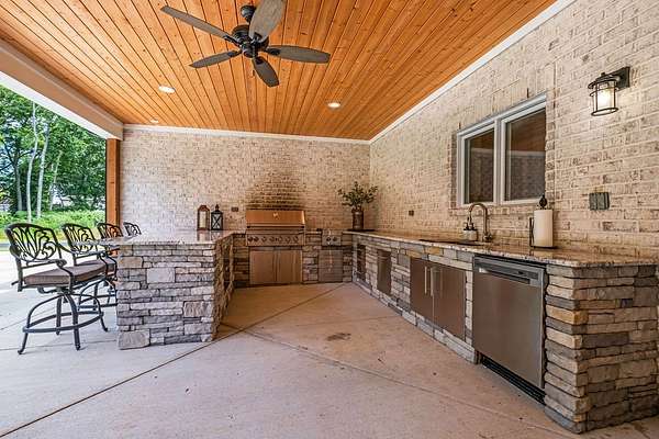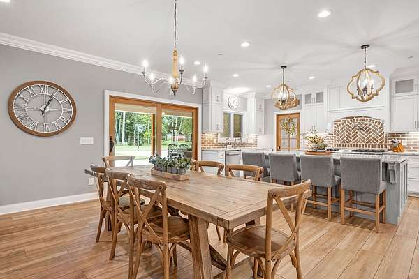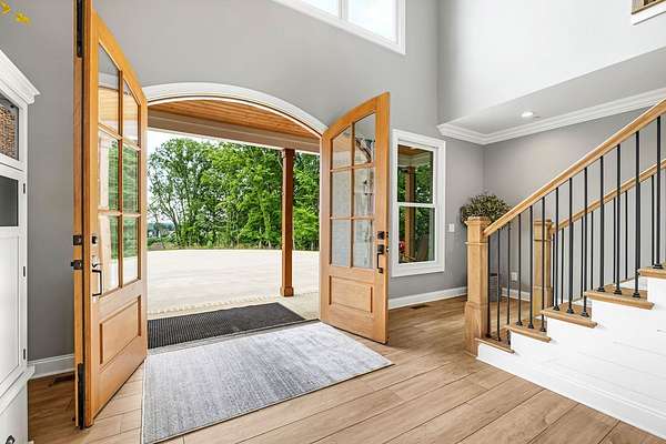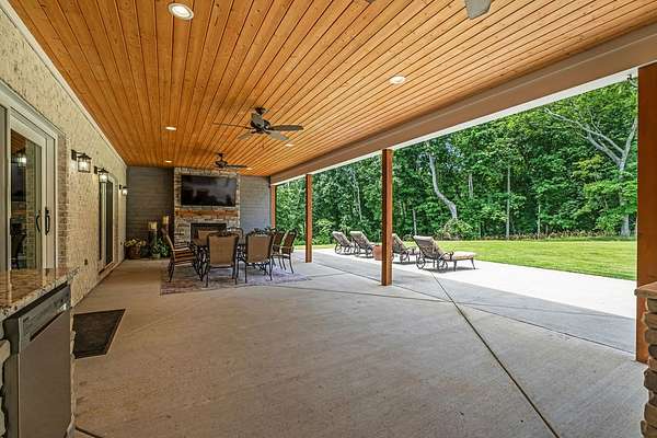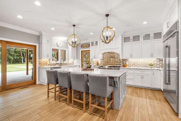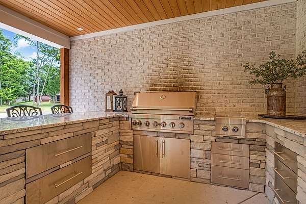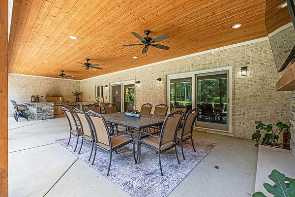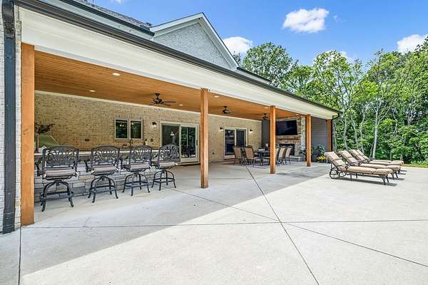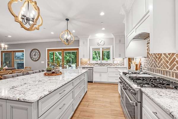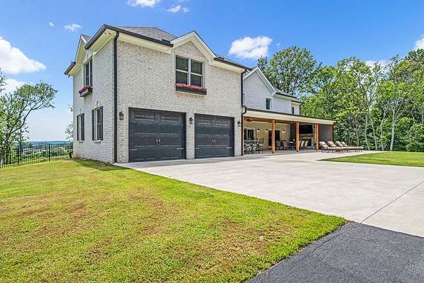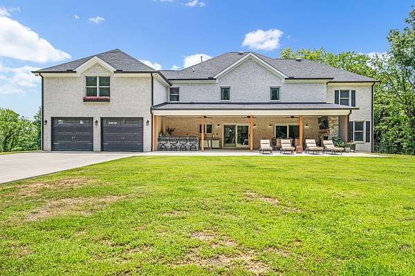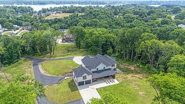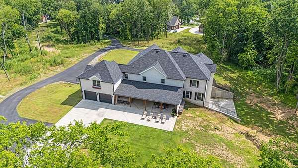 Must see in person to appreciate! Estate living on over 5 private acres with a view of Hickory Lake. Every high end detail has been thought of for easy multi-generational or family living over the long term. The main level has no steps in or out of the home, wide entrances for ease of movement. No lugging groceries up steps into your home. A huge walk in pantry located off the kitchen for convenience. The main floor bedroom suite can be used for visitors or homeowners. It includes a walk in shower, full soaking tub, oversized his and hers closets. The spacious living room, kitchen and dining area are a full open concept with the ability to host family and friends in one space. A second main floor bedroom can be used as a bedroom/office or art room, with an oversized closet and half bath in the adjacent hallway. Also on the main floor, a huge laundry room with sink and storage space. . The custom cabinets go to the ceiling. High end stainless steel appliances kitchen, oversized island with comfortable seating for 4, Island under cabinet storage, granite countertops throughout, oversized gas stove and refrigerator, brick accent backsplash. The spacious covered patio off the large living area also contains a full kitchen with granite countertops, stainless gas grill, sink and dishwasher, gas fireplace and outdoor 75" TV for outdoor viewing pleasure year round.