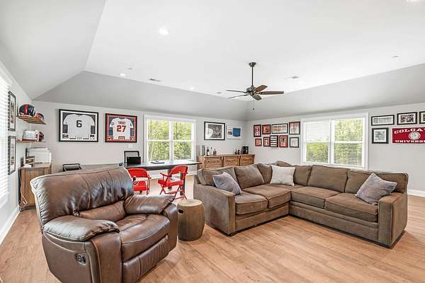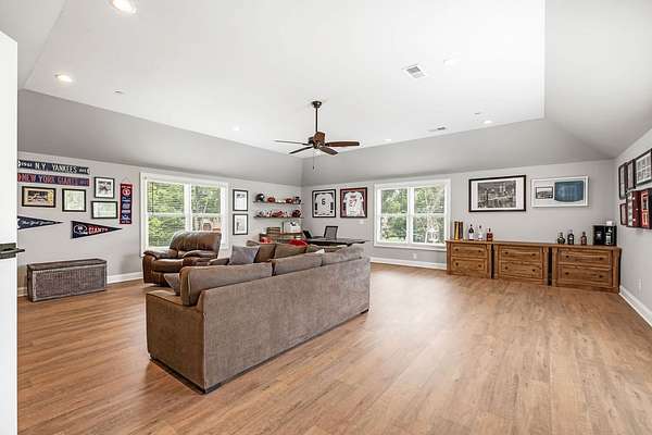 The second floor features a second master suite with oversized walk in shower, oversized walk in closet and vaulted ceiling. There are TWO oversized great rooms for entertainment, office, game room, bunk bed room, flex spaces to customize to your preferred specifications to enjoy. Two more bedrooms with full bathrooms round out the large living areas.The basement features a walk out patio through double doors and oversized garage door (8 x 10 ft), dry walled 10 ft ceilings, AC, heat, electric. Whether you want to build an apartment, park your classic cars, home gym, work shop or any other use!