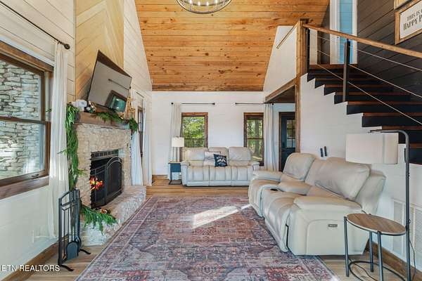 MOTIVATED SELLERS - BRING ALL OFFERS! Sellers offering $5,000 in concessions buyer can use toward closing costs or rate buy-downs with accepted offer! Sellers are being relocated and must sell. Welcome to your newly renovated turnkey & fully furnished mountain retreat on 1.73 acres with mountain views! This 3 bedroom, 2 bath cabin plus a 1-bedroom tiny home offers the perfect blend of rustic charm and modern convenience. Enjoy your fall mornings with coffee on the porch swing and spend your evenings entertaining on the 900 sq. ft. wrap around deck with new 6-person hot tub/spa! Step inside to the living room with soaring cathedral ceilings, a cozy wood-burning fireplace, and a light-filled living area. The primary bedroom is on the main, along with a full bath, kitchen and dining area, and flex room with bunk beds. Upstairs is an additional fully renovated bedroom and full bathroom. In addition, the property includes a versatile Amish-built building/flex space featuring its own dedicated electrical panel that can support an RV - ideal for use as an office, guest quarters, creative studio, or even short-term rental potential. This home is a turnkey opportunity as a full-time residence, vacation retreat, or an investment property. No HOA, and the parcel consists of 2 tracts! Don't miss your chance to own this welcoming, updated gem in a peaceful setting! Updates within the last two years include: Expansive 900 sq. ft. wraparound deck with room for entertaining. HVAC installed 2020; coils and duct work replaced under warranty Spring 2025. Septic tank pumped and riser installed August 2024. High-speed fiber optic internet/TV/phone available through Spectrum. New 6-person hot tub/spa with Bluetooth audio, LED light package & cover. Fresh interior & exterior paint throughout. Completely renovated bathrooms with updated fixtures and finishes. Updated kitchen featuring new stainless steel appliances. New sliding glass doors. New ventless washer/dryer combo. Enclosed loft, creating a true second bedroom. Custom built-in bunk beds for additional sleeping space. New luxury vinyl plank flooring throughout the main level. Conveniently located 6 minutes from downtown Sweetwater, 10 minutes to Wal-Mart and Loudon, 20 minutes to Athens, 45 minutes to Knoxville/Tyson-McGee Airport, and 1 hour to Chattanooga Airport.