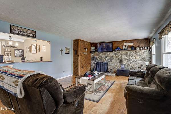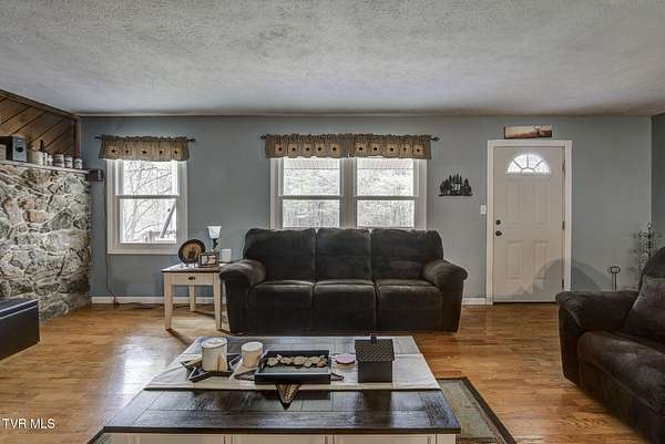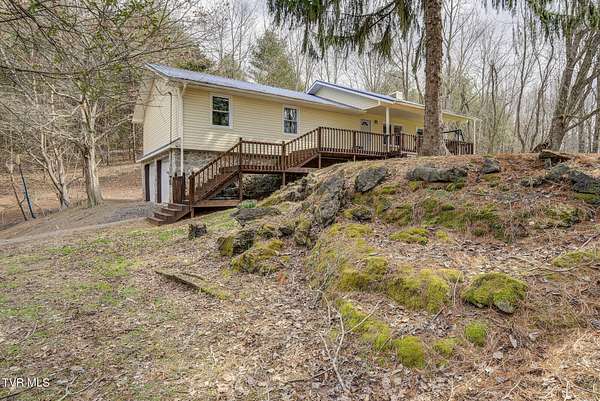 Tucked away in a peaceful setting, this one-family-owned home offers the rare combination of privacy, acreage, and comfortable living surrounded by nature. A long private driveway carries you far from the main road, opening to nearly 13 acres (12.94 acres) of gently rolling and level land with mature trees and open space. The property provides plenty of room to enjoy the outdoors, with wildlife frequently passing through and trails to explore across the land. Several areas offer potential building sites, giving flexibility for future plans or additional structures. The charming front porch welcomes you home and offers a quiet place to relax while taking in the peaceful setting. In the front yard, a fire pit creates the perfect gathering place for evenings under the stars, while the backyard features a handmade stone grill, ideal for outdoor cooking and entertaining. Out in the yard, you can easily imagine a tree swing beneath the shade trees and the simple joy of country living. Built in 1983 and held in the same family since it was constructed, the home features three spacious bedrooms and two full baths. The comfortable great room flows nicely into the dining area and kitchen, creating a natural gathering space for everyday living and entertaining. Recent improvements include new windows and doors, along with stainless steel kitchen appliances and a brand-new dishwasher. Several areas of the home have been freshly painted, adding a clean, refreshed feel. The finished basement area adds flexible living space that can be used as a family room, additional bedroom, recreation area, office, or hobby space depending on your needs. While the setting feels private and tucked away, the location remains convenient. The home sits just minutes from downtown Elizabethton and is close to Bluff City and Bristol Highway, offering easy access to Bristol, Johnson City, Interstate 81, and Highway 19E leading toward scenic Shady Valley. Buyer or buyer's agent to verify all information.