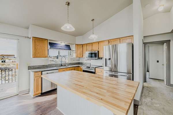 If you've been looking for space, views, and a home that feels like a retreat-this is it. 135 Glenvista Dr. offers wide-open Ruby Mountain views and the perfect balance of privacy and convenience.The home is filled with natural light and thoughtful updates throughout. The kitchen is a true gathering space with new appliances, granite countertops, wood laminate flooring, and a butcher block island. Comfortable living areas and a pellet stove with thermostat control make the home cozy year-round.Featuring 4 bedrooms, 2 full baths, and 1,984 sq ft, the home also includes a large flexible space ideal for a second family room, game room, home office, or potential 5th bedroom. A 2-car garage adds convenience.Set on 2.37 acres, the property offers a fenced and cross-fenced yard, a built-in fire pit, an apple tree, and ample space for outdoor living. The swing set and pool stay. Additional features include a 10x10 shed, a new water heater, new roof in 2023, and a front-yard sprinkler system.A must see!