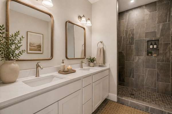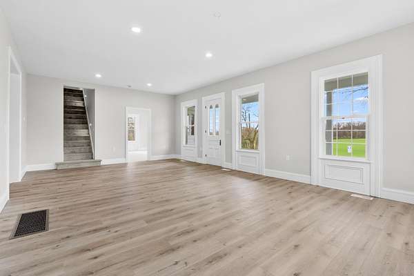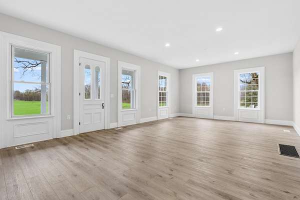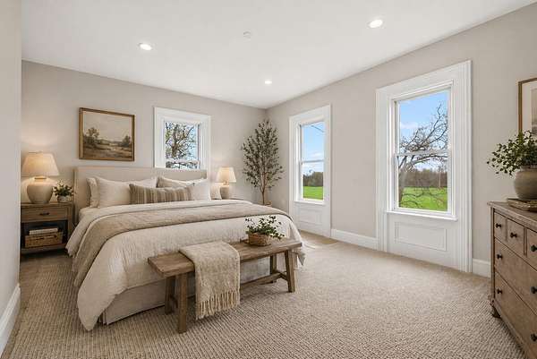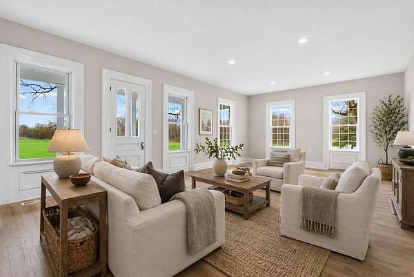 Completely reimagined from the studs up, this stunning farmhouse sits on 2.9 acres and offers the perfect blend of modern luxury and timeless character. Soaring ceilings and an abundance of windows flood the expansive living room with natural light, creating an airy, inviting space ideal for both relaxing and entertaining. The fully renovated kitchen showcases beautiful granite countertops, brand-new cabinetry, and thoughtfully designed finishes that elevate both style and function. Every inch of this home has been meticulously updated--truly all new everything--giving you the confidence of modern construction with classic farmhouse charm. Each of the three spacious bedrooms features its own private en suite, offering comfort, privacy, and flexibility for guests or multi-generational living. The open layout, high-end finishes, and serene setting make this home a rare find.