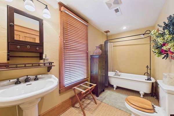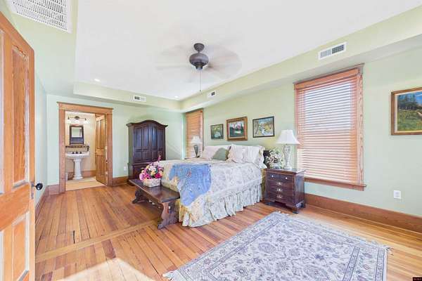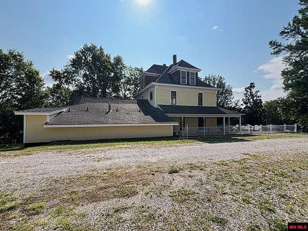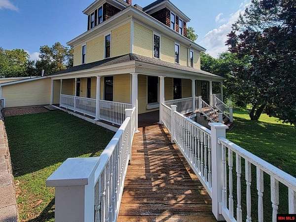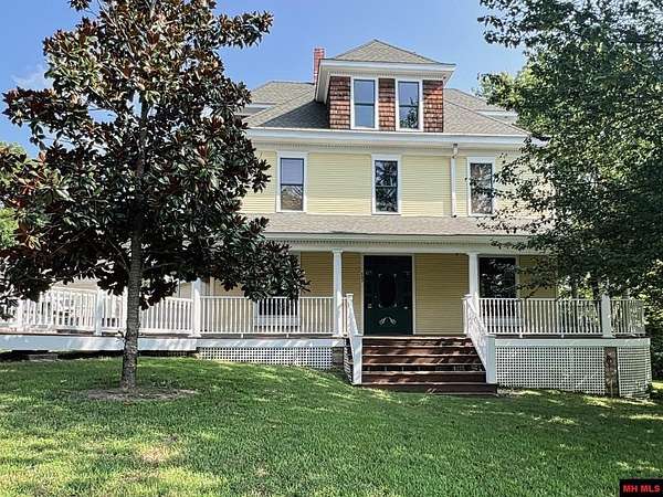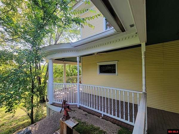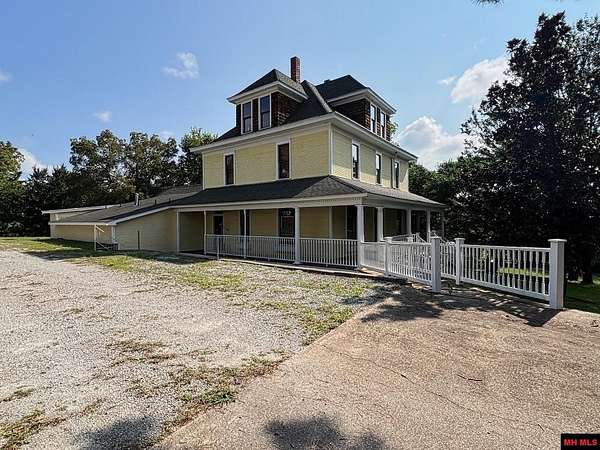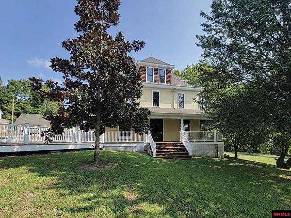 Welcome to your amazing, charming, and stunning 3-bedroom, 3 bath/2 half baths, 3-story Four Square style residence, built in 1912 and listed on the National Registry of Historic Homes! Offering over 4,000 square feet of living space and nestled on 10 AC M/L with enchanting Lick Creek frontage, this exceptional property seamlessly combines classic charm with modern convenience, including central heat and cooling. It's perfect for various uses, whether as a charming bed & breakfast, a sought-after VRBO, or a unique and welcoming place to call home. Upon entering, you'll be captivated by the grand staircase and exquisite original hardwood floors throughout. Large living room & family room, 2 primary suites on second level, claw-foot tubs, commercial grade kitchen appliances, beautiful large wrap around deck, with 1 car garage and a rustic red barn! All city utilities! Minutes from Bull Shoals & Norfork Lake & Bryant & Norfork Rivers. Don't miss your chance to own a piece of history!