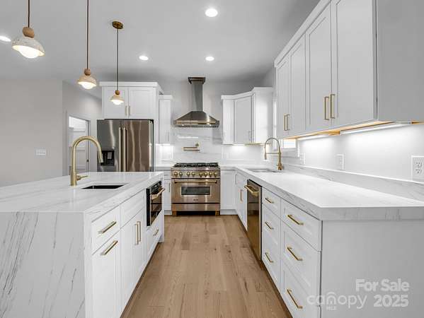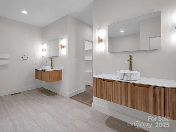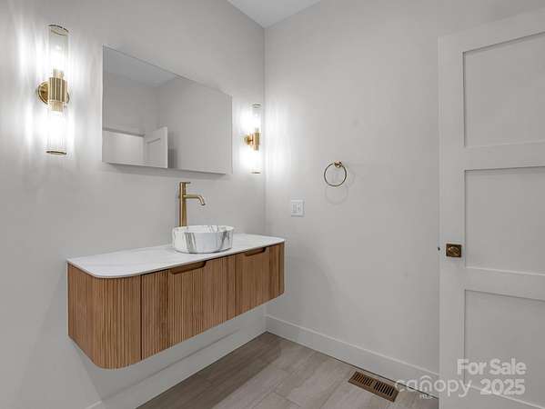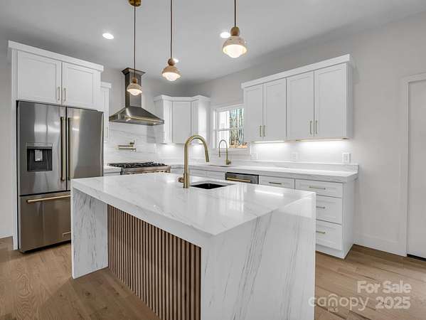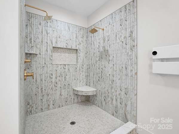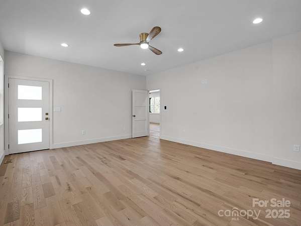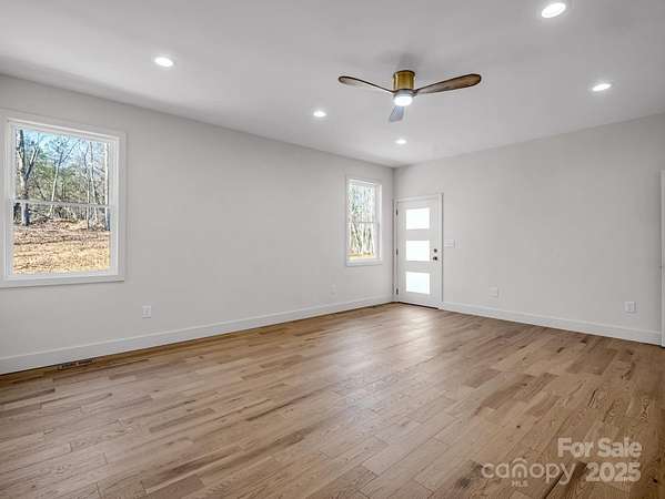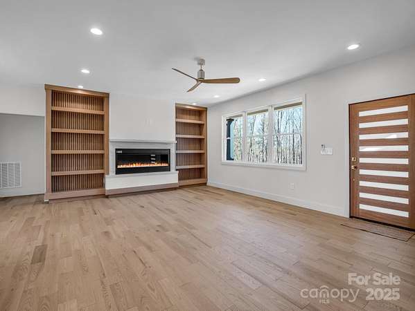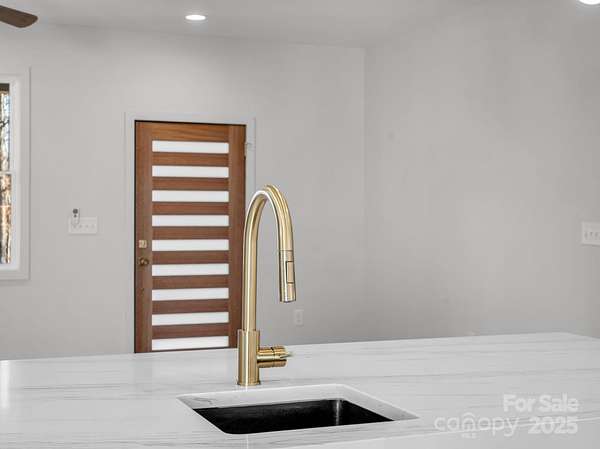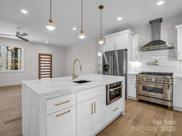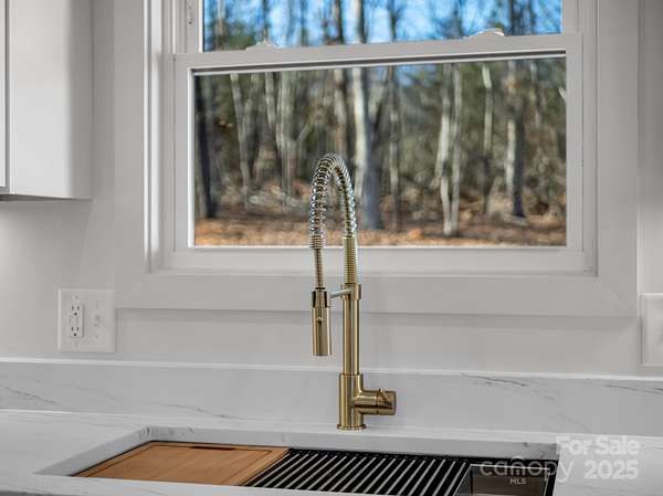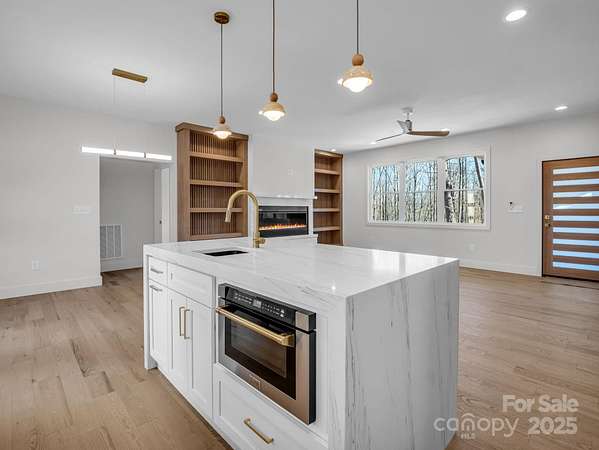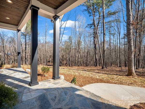 A setting that feels worlds away yet remains fully connected to downtown Morganton, this extraordinary property spans 17.88 private acres within the sidewalk corridor, offering peaceful seclusion and in-town convenience. The long, graceful drive sets a stately tone as the home comes into view, perched on a gentle rise and surrounded by wooded acreage often visited by deer. With 2300 heated square feet, this 3BR/2BA home is marked by exceptional craftsmanship, attention to detail and quiet luxury in an unmatched, in-town setting. The solid hickory front door framed by modern lighting opens to a refined and inviting interior. Stunning oak floors in a soft, natural finish guide you through beautifully designed spaces. The kitchen is the star of the show with thick-edge quartz countertops, including a waterfall feature paired with a channelled oak island and vegetable sink. A full suite of ZLINE appliances elevates the space: gas cooktop, vent hood, refrigerator, and an automatic touch-drawer microwave. A spacious pantry with a pocket door keeps everything seamless and organized. The living area is anchored by a cozy fireplace wrapped in elegant quartz and custom channelled oak bookshelves. The primary suite is a private haven, generous in space and complemented by two custom walk-in closets. Its spa-like bath features double vanities with vessel sinks and marble tops, a freestanding tub, a stunning tiled walk-in shower with dual shower heads, glass door, heated towel bar, and beautiful porcelain tile. Doors from the suite open directly onto a stone patio overlooking the private, peaceful acreage. The laundry room continues the thoughtful design with a utility sink, storage closet, additional cabinetry, and another pocket door to maintain clean lines. A large bonus room with its own mini-split system offers flexible space for guests, work, or recreation. Sleek, modern garage doors introduce the cool character of this home on arrival. Roomy front porch is perfect for serene, wooded views and unwinding. Every detail of this private retreat reflects quality construction and elevated finishes, creating a residence that is cool, elegant and inviting~all within easy reach of downtown Morganton.
