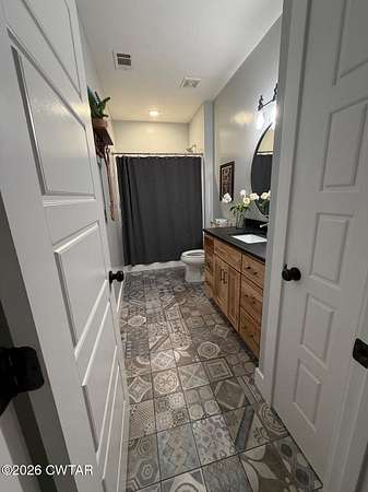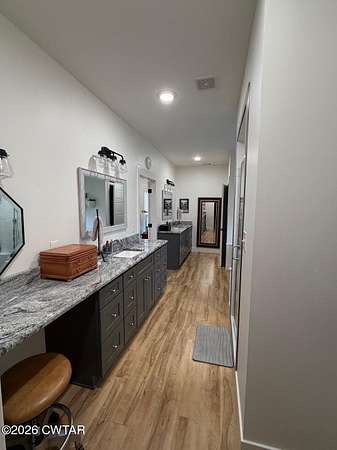 - Ceramic Tile Shower, Double Vanity, Entrance Foyer, Fiber Glass Shower, Granite Counters, Kitchen Island, Knocked Down Ceilings, Open Floorplan, Soaking Tub, Tub Shower Combo