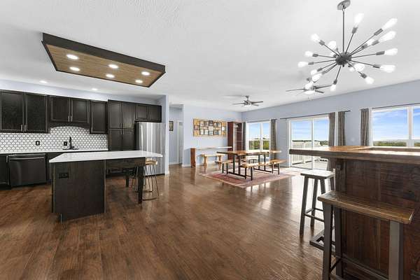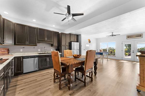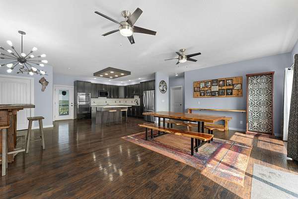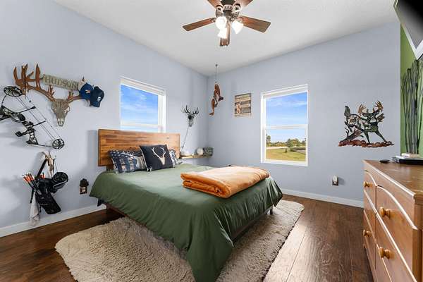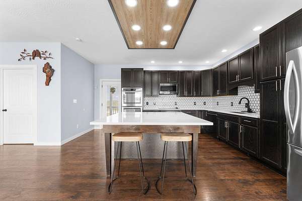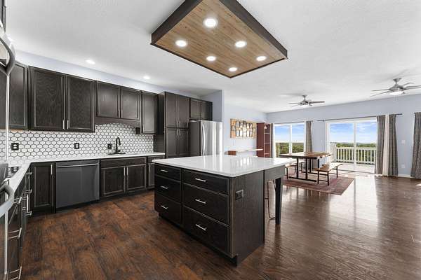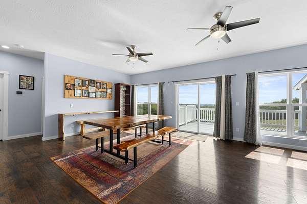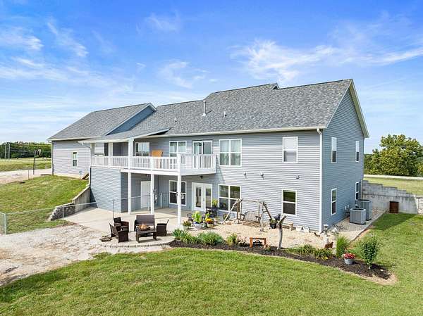 Experience the beauty of the rolling Ozark Mountains from this exceptional 6-bedroom, 4-bathroom home on 2 scenic acres. Designed with flexibility and function in mind, this property features two complete living spaces--each with its own kitchen, laundry, primary suite, HVAC system, and water heater--making it ideal for multi-generational living, hosting guests, or generating income through long-term rental of the lower level.Just 2.5 miles from Highway 65, you'll enjoy the perfect balance of peaceful country living and convenient access to Branson and Springfield. The main level welcomes you with an open floor plan filled with natural light and soaring ceilings that create an inviting sense of space. The kitchen features a large island, soft-close cabinetry, double ovens, and fiber internet access, offering both style and practicality for everyday living or entertaining. Both main-level bathrooms include heated floors, and the primary suite adds comfort with a heated shower bench. Step onto the large covered deck to take in the sweeping views of the Ozark hills--perfect for morning coffee or evening sunsets.Downstairs, the walkout basement mirrors the versatility of the main level with a full kitchen, additional bedrooms, a second laundry area, and direct parking access. With its private entry and full amenities, this space is ideal for guests, extended family, or a long-term tenant. A covered patio below the deck offers another peaceful outdoor retreat, and a spacious storage room ensures ample space for organization.An oversized 3-car garage with 12-foot ceilings provides room for vehicles and hobbies, and recent updates include a new roof (2023) and new upstairs water heater (2023). The adjoining 2-acre parcel is also available for purchase--see MLS #60263365. With its flexible layout, beautiful views, and income potential, this Ozarks retreat offers a rare opportunity to live, relax, and invest all in one place.