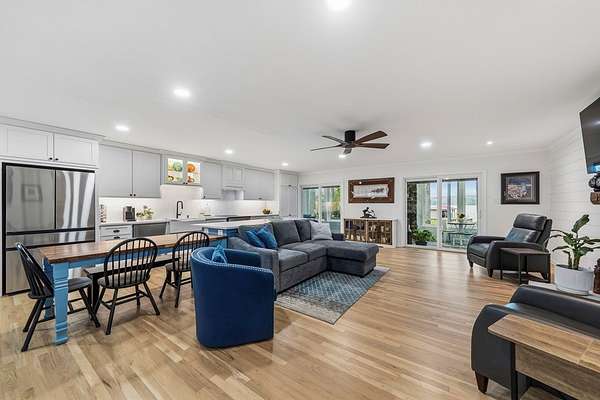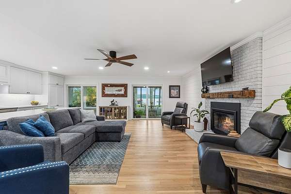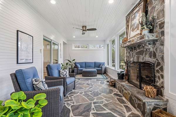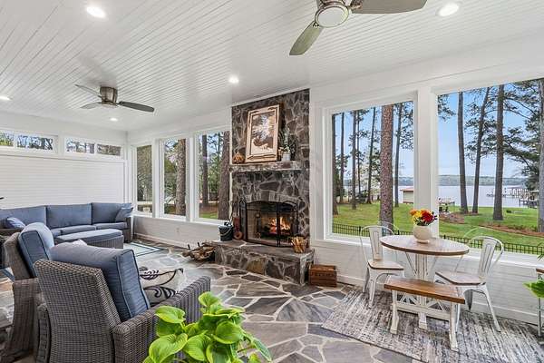 Wake up to some of the best sunrises on the lake in this updated 4-bedroom, 3-bath home on 1.67 acres in the Airport area of Lake Sinclair. It's in a quiet, protected cove with about 4–5 feet of water, making it ideal for boating, swimming, and enjoying the lake year-round. You're also just minutes from Kroger and Publix, which makes everyday living easy. Outside, it's set up for lake life. There's a single boathouse with a lift, a jet ski lift, and a dock storage shed. The raised fire pit area is perfect for evenings by the water, and the fenced yard is great for pets. There's also plenty of space for a future pool or pickleball court. Plus, there's a 12x30 RV cover with 30-amp service and an extended sewer hookup, along with a separate covered party pavilion for entertaining. Inside, the kitchen has been updated, and the home features recently refinished wood floors. The enclosed glass sunroom is a great spot to relax and take in the view, complete with a wood-burning fireplace. The living area also features a stylish electric fireplace that adds warmth and ambiance. The home includes a whole-house Generac generator and a Rinnai tankless water heater. You'll find a walk-in closet, extra pantry and storage, and an updated laundry room with a sink. There's also a 10x12 workshop with power, along with a well house and lake water pump for watering the lawn. The property includes an attached two-car garage, a walk-out basement, and a curved driveway with plenty of parking—easily 10 to 12 vehicles—all on a Fee Simple lot. Come take a look—schedule your private showing today