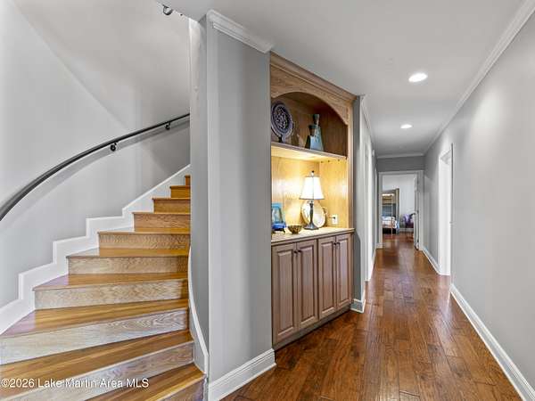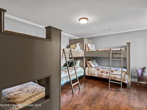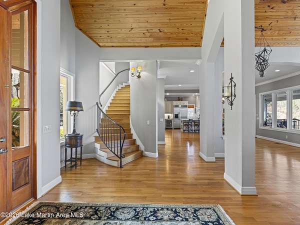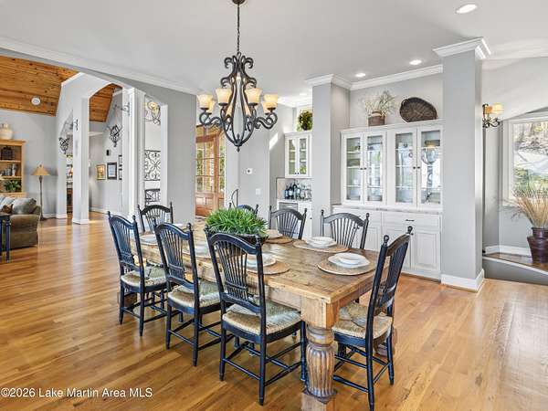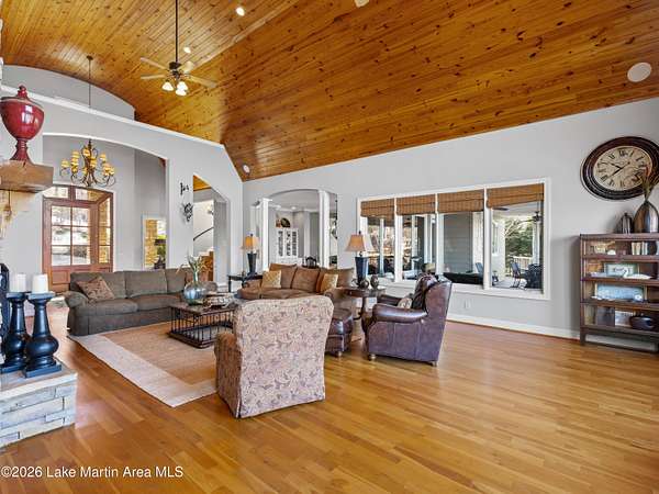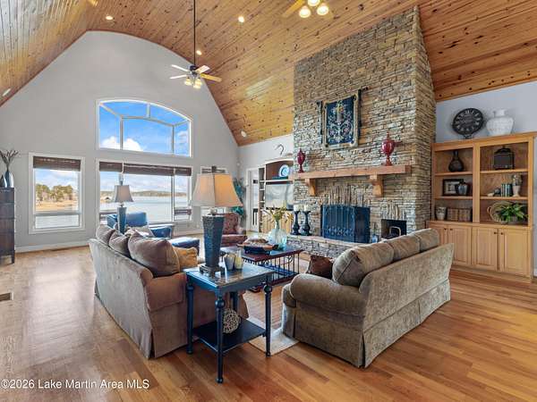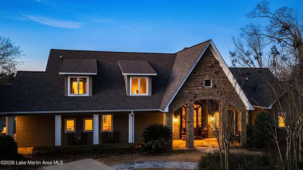 How long have you waited to make the coveted waterfront community of Marina Marin Estates your Lake Martin home? Well, it's here and a home for sale in the Estate section is a rare occurrence in this highly sought-after neighborhood.... so don't miss this chance as it may not come along again for a while. This stunning Kenny McBride-built home, situated on approximately 2.85+- acres with around 7,600 +-sq ft of living space under roof features a gated entrance and abundant seclusion. Enjoy breathtaking lake views, expansive grounds, and over 370 +-feet of waterfrontage, perfectly positioned for effortless access to all of Lake Martin's wonders. Inside discover an open floor plan with numerous windows, spacious rooms and more than ample storage. Located on the popular east side, it boasts a large lakeside terrace, perfect for swimming, sunning and entertaining friends and family, a boat dock with an extra heavy duty boat lift ensuring your watercraft is securely in place and all conveniently located near land and water activities... and not to forget to mention the extensive hardscapes/flagstone on the property, mature landscaping with sprinkler system and concrete seawall. This home offers an exceptional view of Lake Martin, a triple car garage with bedroom, living area and bath for extra sleeping and a private area for the kids. In addition, there is plenty of parking, a huge open floor plan with numerous windows, expansive porches, a screened porch with a wood burning fireplace and a very nice long view, Voluminous wooden ceilings in the main living area with a woodburning fire- place set the tone for relaxation or enjoying sports. This spacious home features 6 bedrooms (one being a bunkroom) and 8 bathrooms (one on the exterior) with the primary suite and huge walk- in closets adjacent to the oversized bath and lovely views of Lake Martin. Other features include 2 living areas (one on the main level and another on the lake level), an expansive kitchen with a Wolf gas range and oversized Kitchen Aid refrigerator, large hood, breakfast island, dishwasher, wine cooler and other appliances, mud room, pantry, desk nook, and room for a potential wine cellar and weight room area on the lake level along with a full bar perfect for entertaining. And there is more...... 2 spiraled staircases, an an outdoor oasis that couldn't be more livable with a covered grilling vestibule adjacent to the kitchen, outdoor shower and a large firepit with Adirondacks and stone pathways leading to the water's edge. 5 HVAC units (all but one replaced with warranties up to around 2034), 2 oversized water heaters (only 1 original), roof replaced around 2014, rain gutters, expansive hardscapes, engineered septic system, a 600/ amp electrical service, security system and a propane tank. Located in one of the most popular locations on Lake Martin in the Blue Creek Area close to The Ridge Marina and many restaurants you can access by boat. Seize this extraordinary chance to make this incredible property yours and own a piece of paradise adding your personal touch and finishes. Start crafting your Lake Martin story with memories that will last a lifetime! Call for more details and schedule a viewing today.