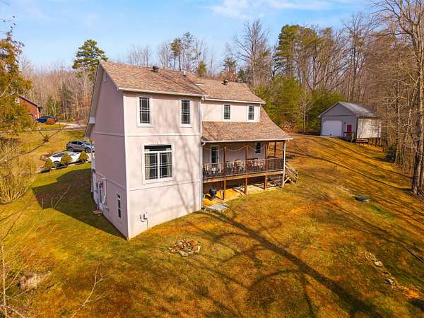 This well maintained home with nearly 3 acres of land and a detached 21x32 garage offers the perfect balance of privacy and convenience. Tucked into peaceful wooded grounds with a creek, this home feels like a private getaway while remaining just minutes from town amenities. This home offers 3 bedrooms (the finished basement space being counted as the 3rd bedroom) and 2 full bathrooms. The main level of the home features the dining area, a nice kitchen with ample cabinet space, a full bathroom and the living room. You also have access to the covered front porch and the covered back deck from the main level. Upstairs you have two spacious bedrooms with closets and a full bathroom with the laundry room being part of this bathroom. The main bedroom has a jetted soaking tub for relaxation. The basement space is the 3rd bedroom and has both interior and exterior entry doors. Some improvements completed include: New HVAC systems (2022), New windows (2023), Radon mitigation system (2024), New roof (2017) New water heater (2019). Outside, a generous detached garage offers workspace and storage for toys or projects, while the property's mature trees and creek (at the bottom of the hill) create beautiful, secluded spots for morning coffee, outdoor entertaining, or nature walks. If you're looking for a serene, country-like setting with easy access to town, this property is a rare find. Schedule a showing today to experience the peaceful setting and possibilities firsthand.