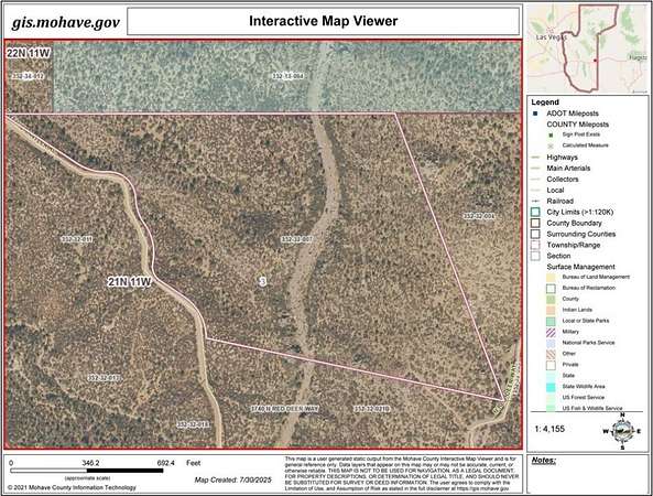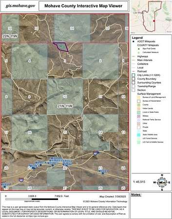 From Kingman, I-40 east to Exit 87 Willow Creek Rd. Left at stop sign. At black gravel rd, zero your odometer & keep it running. Follow black rd/ .4 R @ T/ 2.3 L @ Flying Eagle/ 2.9 L @ T/ 3.8 R @ Velvet Antler (unmarked)/ 4.9 SW Prop Pin is on your r (look for ribbons)/ Proceed to my sign on R, pull over & begin ribbon hike to left of sign. (Mileages are approx) Please be accompanied by Realtor.