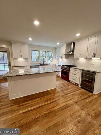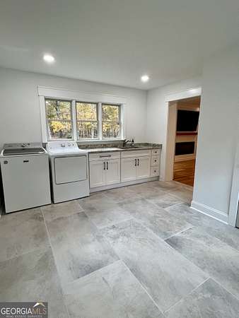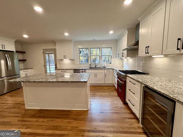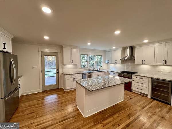 Welcome home to 135 Oakmont court, a beautifully restored 1983 traditional Cape Cod home that blends timeless architecture with modern updates. Situated on a level, fully fenced 3.71 acre lot in the sweet town of Winterville, this property offers space and privacy just minutes to downtown Athens. Completely restored and expanded in 2023, this home offers 4 bedrooms and 3.5 baths, 3066 square feet of living space including an addition of a new oversized garage, new laundry room and a stunning primary suite on the main level featuring an ensuite bath with double vanities, curb less shower and massive walk in closet. Upstairs you will find 3 generously sized bedrooms (one was the former primary suite) and two brand new baths. The kitchen was thoughtfully redesigned with new cabinets, granite counters, beverage center, new commercial style gas range, new white oak floors and walk in pantry. The triple windows above the kitchen sink have amazing views of the backyard. The family room was opened up with the addition of a reclaimed wood clad beam as well as an efficient electric fireplace and new white oak flooring. Step out onto the screen porch, an inviting spot to relax and enjoy views of the towering oak trees and charming chicken coop. Going downstairs you'll find 1232 square feet of basement space complete with repurposed kitchen cabinets and space for up to 3 cars, perfect for hobbyists, wood workers or just extra storage. Enjoy the peace of mind being part of a small town community with the freedom of no HOA. This move in ready home is within walking distance to the Fire Fly trail and minutes to Kroger, Walmart, Lowes and local dining favorites. Schedule your showing today!