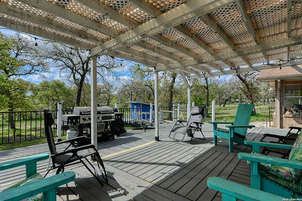 Welcome to 2.432 acres of nature that has road frontage on 2 sides. BIG TREES. Front entrance is on Pullman, and you have frontage on Post Oak as well. This is a perfect set up to place a 2nd home for a family member. Mature trees shade the area with a gentle slope to add character. BIG TREES. The all-brick home was built in 1979 with living space of 1796, later the garage was converted into living space, so now the total square footage is 2434. Most importantly, the composition roof and conventional septic system is 10 years old. The HVAC system is 4 years old. BIG TREES. The large fireplace will keep you warm in the living room that is open to the kitchen/eating area that offers solid counter tops and decorative backsplash. Refrigerator will be conveyed to the new owners. Plenty of light shines in from the sliding patio door that leads out to the huge, covered deck. The master suite is not your typical box-shaped room. It offers a unique shape that allows you to be creative with space. Walk in closet and en suite bath. The master has private access to the back enclosed patio. Bedrooms 2 and 3 are larger than average at 15 feet x 14 feet. A full bathroom is located in between these two bedrooms. The converted garage was 638 feet and has been sectioned into two spaces. One contains the washer and dryer hook up, the hot water heater, a work bench and a storage closet, with access out to the side of the home. The possibilities for this room are endless. BIG TREES. The remainer of the garage conversion was used as a bedroom, but also has many options, such as an office, or play area. Both rooms' air is conditioned by window units. The covered deck is spacious and a great area for parties and cookouts. Follow the wood deck path down to the landing that was designed for a round above ground pool. There is a storage area right there ready for all the pool supplies and toys. This home is in the La Vernia school district with a tax rate currently at 1.73. We have an H.E.B. grocery store and lots of boutiques, a few restaurants, a hardware store, a country store, clinics, fast food, historical museum, several gyms, and all the friendly faces you'll ever want to see. This little town is growing fast, so hurry and grab this piece of it quickly. DID I MENTION THE BIG TREES?