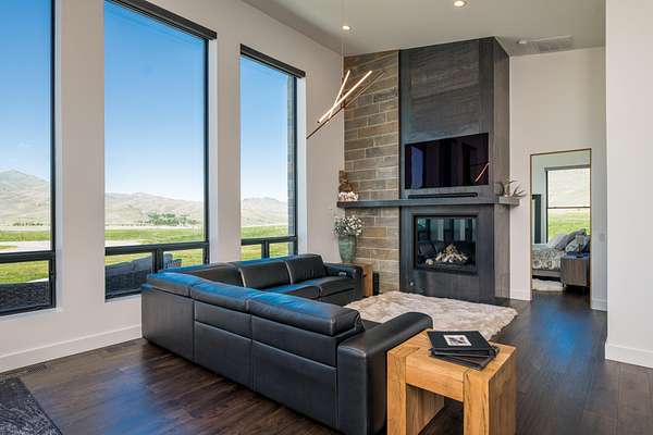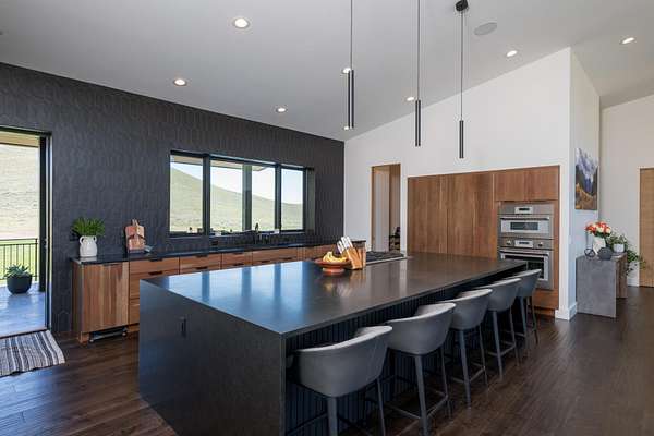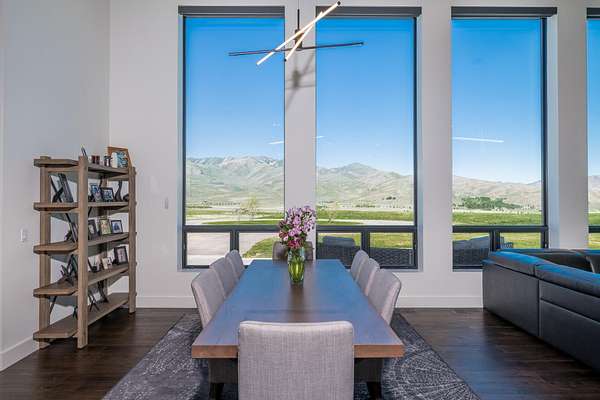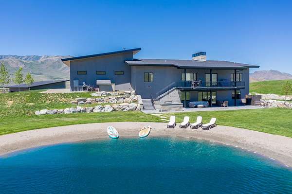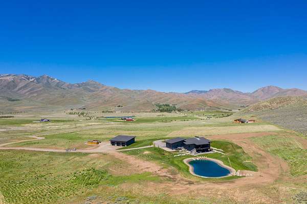 Est $23,466/moDiscover your secluded paradise just minutes from town! This stunning estate, zoned for agriculture and horses, sits on 32 acres and features a personal playground and panoramic mountain views. The main level boasts a primary suite, open floor plan with high ceilings, gourmet kitchen, and floor-to-ceiling windows that flood the space with natural light and breathtaking mountain views.