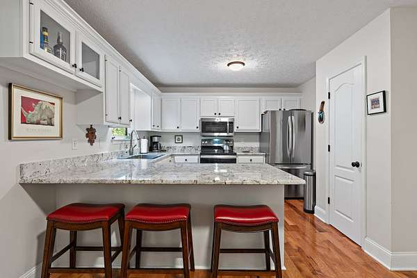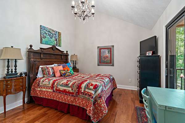 The primary suite is a true escape with beautiful hardwood floors and a private covered balcony--perfect for morning coffee or quiet evenings surrounded by trees.