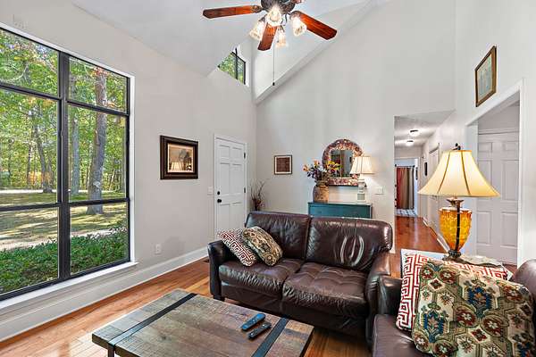 Tucked among nearly six acres of mature trees and rolling Tennessee hills, this beautifully maintained home offers the perfect blend of privacy, charm, and connection to nature. From the moment you arrive, a window-lined entryway fills the space with natural light and frames the lush scenery, setting a peaceful tone throughout.