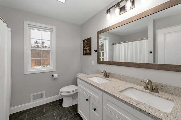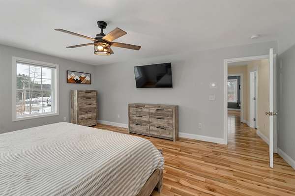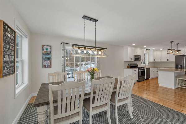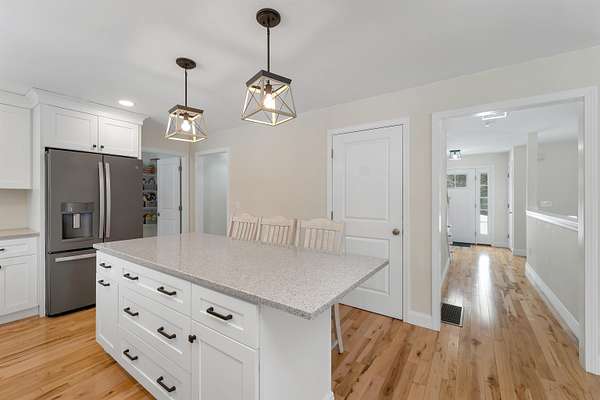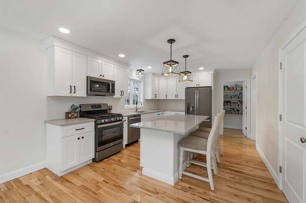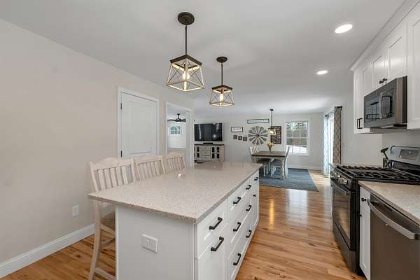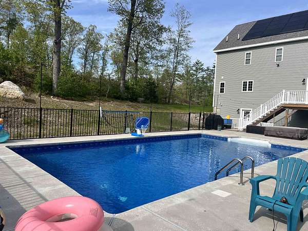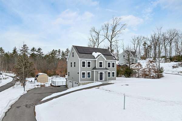Built in 2021, this custom-designed home blends modern efficiency with thoughtful detail in a peaceful neighborhood setting, offering just under 2,700 finished square feet across the first and second floors plus a beautifully finished third level. The open-concept main floor is designed for both everyday comfort and effortless entertaining, featuring rich wood flooring, oversized windows, and a stunning kitchen complete with white shaker cabinetry, quartz countertops, an expansive island with pull-out storage and trash/recycling drawer, a hands-free faucet, gas range, and a sunlit walk-in pantry. A flexible bonus room/office on the main level, sits alongside a separate laundry room and half bath for added convenience. Smart upgrades include wifi-controlled lighting throughout, dual-zone Nest thermostats, central A/C, ceiling fans in every bedroom, custom room-darkening shades, and a whole-house water filtration system. Upstairs, the spacious primary suite offers a large walk-in closet and tiled ¾ bath with double sinks and walk-in shower, while two additional bedrooms share a full bath with double vanity and quartz countertops. The finished third floor provides exceptional bonus space with recessed lighting, built-in storage, electric heat, and additional storage. Step outside to your private backyard retreat featuring an 18x36 saltwater in-ground pool with propane heater and poured concrete surround, a pool house with electrical sub-panel, covered gazebo with patio pavers, fire-pit area, built-in hot tub, permanent basketball hoop, and paved driveway. The two-car garage includes dual automatic doors, extended-length storage, and under-stair storage. With 28.8 kWh solar panels and a transferable warranty, this home offers comfort, efficiency, and lifestyle in desirable Barrington, just minutes to Route 125. Showings begin at the Open House on March 7th & 8th from 10-12pm. This is your chance to own new construction with the post move in extras done for you!