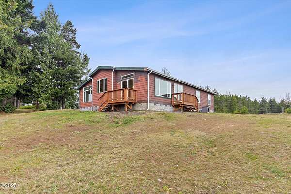 A well cared for 3-bedroom, 2-bathroom manufactured home that sits on more than 42 acres of productive timber land and offering privacy. Built in 2007, the home has seen recent remodeling that includes new LVP flooring, refreshed interiors, and tile counter tops. The layout is practical and comfortable, with an easy flow and open views of the surrounding forest land from the main living areas. The acreage totals 42.24 acres in TC zoning and carries a per merchantable timber estimate from a 2022 timber cruise of approximate $20,000 in value, giving the next owner both room to breathe and long-term resource potential. Beach access is about 1.5 miles away, making the coast close enough for a quick trip without giving up peace and quiet. The property also includes an 864 square foot detached garage built in 2011, along with an 864 four square foot detached shop built in 1992. Together they offer solid storage, workspace, and room for equipment. This is a rare chance to own substantial acreage with a well-kept home, two useful outbuildings, and coastal convenience.