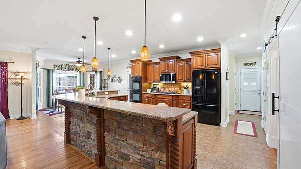 - Built-In Gas Range, Dishwasher, Double Oven, Microwave, Refrigerator