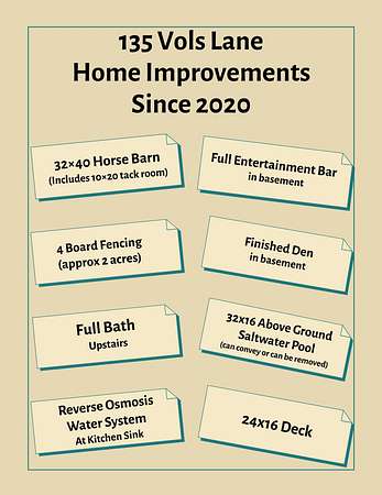 Welcome to 135 Vols Lane in Estill Springs, where lifestyle and location come together beautifully. Enjoy a walkable path to Tims Ford Lake, giving you easy access to fishing, kayaking, and peaceful waterfront views. Inside, the home is thoughtfully arranged for multi-generational living, providing space and privacy for extended family, guests, or flexible living arrangements. The fenced in yard is designed for both relaxation, entertaining and enjoying the horses, featuring a 16x32 above-ground saltwater pool and plenty of space to gather with family and friends. Equestrian enthusiasts will appreciate the barn, offering room for horses, hobbies, or additional storage. Tucked away for privacy yet just minutes from the conveniences of Winchester, Arnold AFB and University of TN Space Institute this property offers the perfect blend of country charm and everyday accessibility. Storm Shelter in basement.