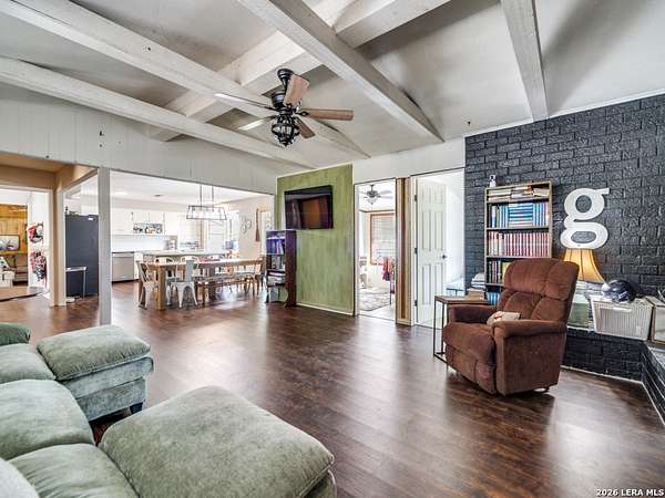 Discover Hill Country living on 3+ acres in Boerne, TX 78006 with no HOA, long-range views, and room for animals-all just 10 minutes from downtown Boerne. This fully fenced acreage property offers mature trees, usable pasture, and the freedom to create your ideal setup for horses, livestock, hobby farming, or a private homestead. Properties like this-acreage in Boerne ISD with no HOA-are increasingly hard to find. The single-story home offers approximately 2,269 sq ft with a flexible layout currently configured as a 6-bedroom, 2.5-bath home, making it ideal for multigenerational living, work-from-home needs, or creative space use. The converted garage serves as a spacious primary suite with walk-in closet, while the large living room features beautiful beamed ceilings and opens to a generous dining area and kitchen with a custom-built island. Major system updates have already been completed: Roof replaced (2021) - main home, detached garage/workshop, and well house. Electrical system and exterior panel updated (2021), HVAC system replaced (2022) Additional features include: 768 sq ft detached garage/workshop, private well and septic system, chicken coop, animal shelter, and fenced pasture. This property does need additional updating, but for the right buyer, it presents an incredible opportunity to create something truly special on a rare, usable acreage tract in Boerne ISD. Enjoy country living in Boerne with quick access to Main Street, shopping, dining, and top-rated Boerne ISD schools. Thoughtfully priced to attract strong interest-bring your vision and unlock the full potential of this incredible property.