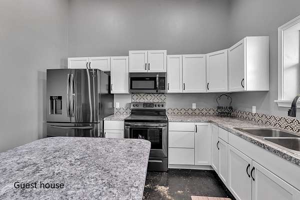 - Fence, Guest Quarters, Gutter(s), Metal Outbuildings, Patio Covered, Pool, Work Shop