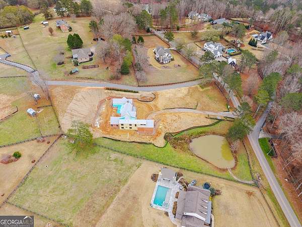 Introducing an extraordinary new construction opportunity set on 3.3 +/- private, picturesque acres. A fresh and new design for the area offers an architectural standout where timeless modern farmhouse design meets uncompromising industrial luxury. Currently under construction, this 6,500+ square-foot estate is being crafted with exceptional attention to detail, soaring volumes, and a floor plan tailored for both elevated living and effortless entertaining. A sweeping single-story layout anchors the home, blending dramatic vaulted spaces, expansive windows, and natural light throughout. The heart of the home features a grand living hall with cathedral ceilings, floor-to-ceiling glass, and seamless indoor/outdoor flow to the backyard and pool terrace. The primary suite on the main level is a private sanctuary, complemented by an additional collection of bedroom suites. 5 bedrooms, 5 full bathrooms, and 3 half bathrooms - perfectly accommodating family, guests, or multi-generational living. A chef's kitchen, hidden scullery prep kitchen, and designer selections throughout ensure every space reflects the uncompromising quality synonymous with today's highest-end custom builds. Thoughtfully designed transitions between the space enhances the home's livability, while oversized windows flood every room with natural light and frame the serene rural surroundings. The exterior living experience is equally impressive, highlighted by a heated gunite salt-water pool, stunning outdoor kitchen space, an expansive covered porch, and the opportunity to personalize outdoor spaces into a resort-level retreat. Situated among other luxury estates on large acreage, this property offers the rare combination of privacy, openness, and proximity; just minutes from amenities, yet feeling worlds away. This is more than a home; it's a legacy property in the making. Now is the perfect moment to engage, customize select finishes, and take part in shaping one of the area's most exceptional new builds.