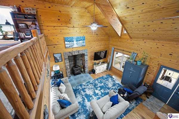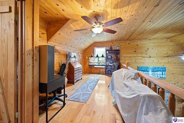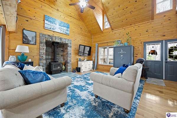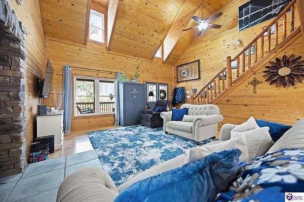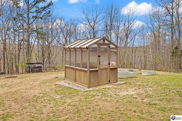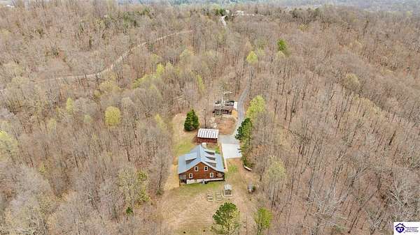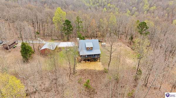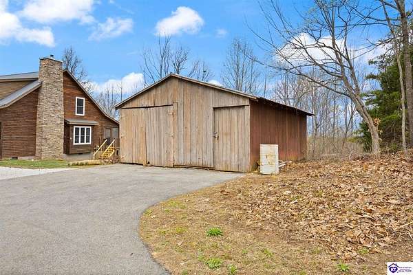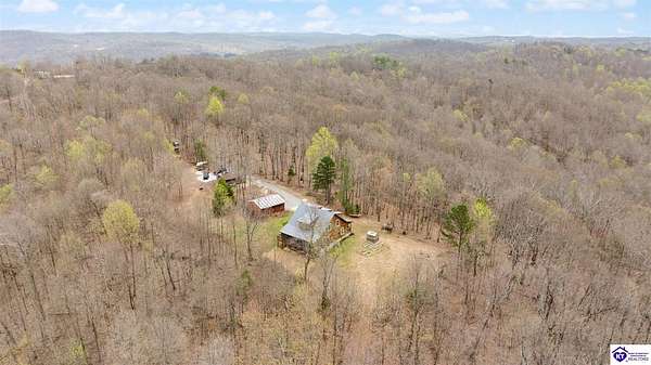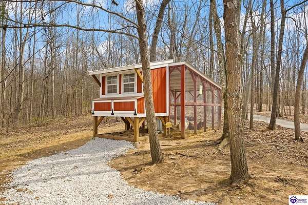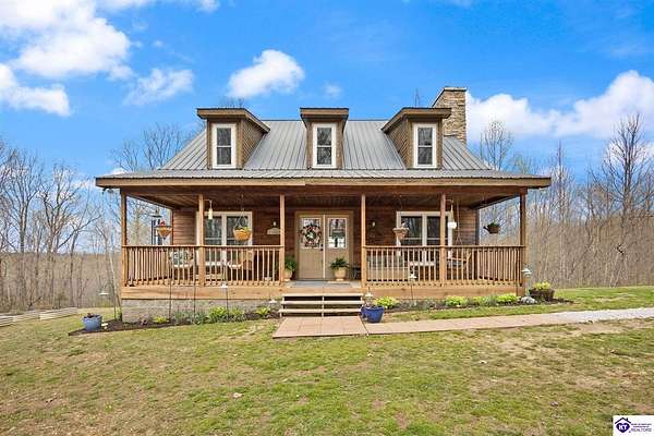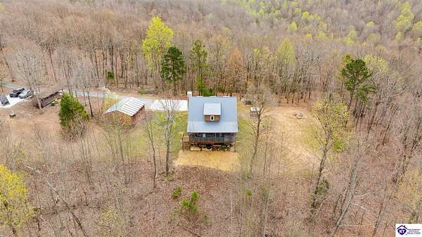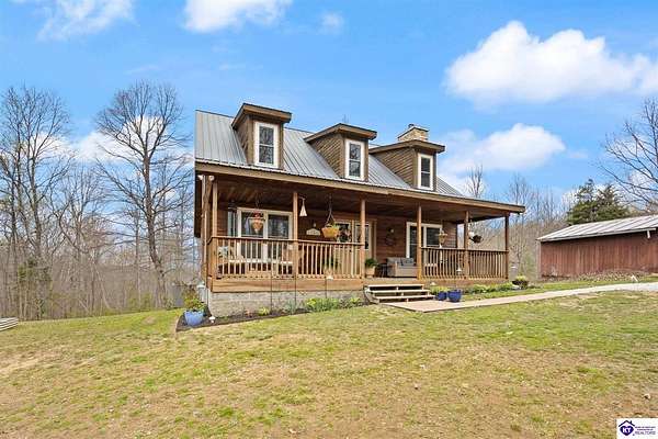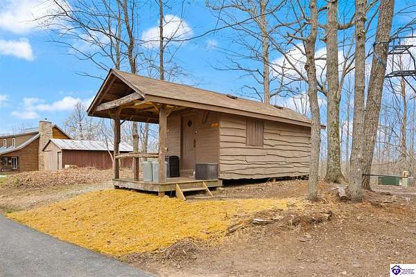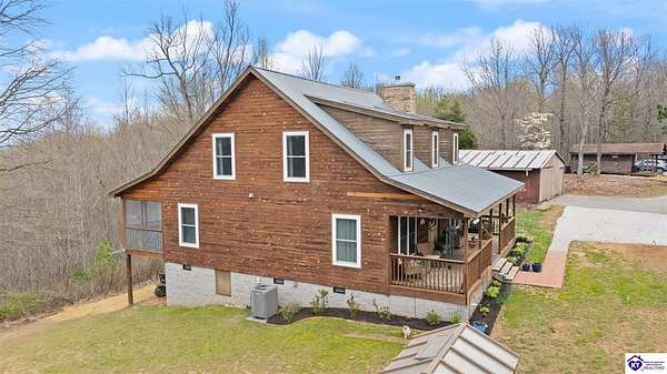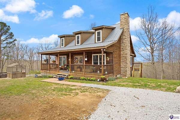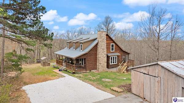 Escape to your own private retreat in the heart of Munfordville, KY! Nestled on an incredible 71 wooded acres, this beautiful cabin with wood siding offers the perfect blend of seclusion, comfort, and natural beauty. This 3-bedroom, 2 full bath home features soaring vaulted ceilings and a stunning stacked stone fireplace with chimney, creating a warm and inviting atmosphere. The open living space is filled with natural light and showcases breathtaking views of the surrounding landscape. Upstairs, a loft area provides a peaceful vantage point overlooking the property, while the expansive screened-in back porch—spanning the full length of the home—offers the perfect place to relax and take in the sights and sounds of nature or use as an office space with the fiber internet that is at the property. Accessed by a long blacktop drive behind an electronic security gate at the end of a dead-end county road, this property ensures ultimate privacy. The land itself is truly remarkable, featuring mature hardwoods, three large waterfalls, and an established trail system ideal for ATVs or hiking. The rolling terrain naturally creates prime wildlife corridors, making this a dream property for outdoor enthusiasts, hunters, or anyone seeking a serene escape. For those interested in homesteading, the property is already equipped with a greenhouse and a custom chicken coop. Additional improvements include a 21’ x 31’ detached garage and a 10’ x 20’ shed, providing ample space for storage, hobbies, or equipment. Whether you’re looking for a full-time residence, a weekend getaway, or a private recreational haven, this one-of-a-kind property offers endless possibilities.