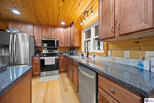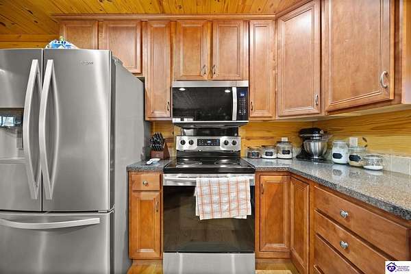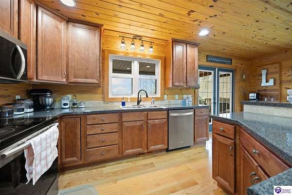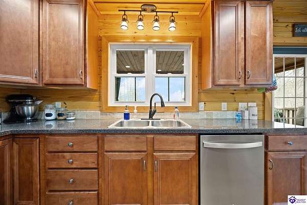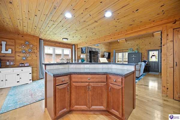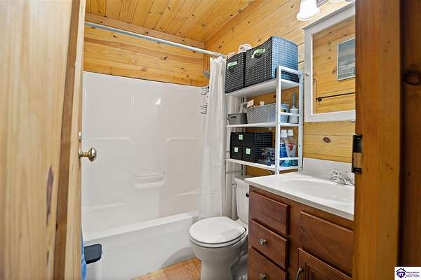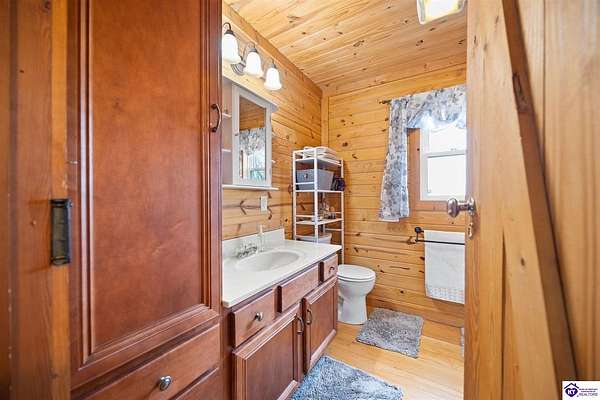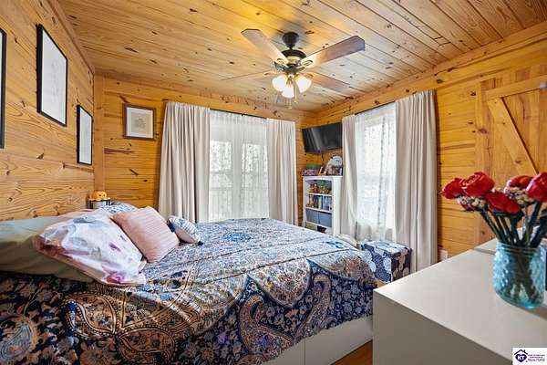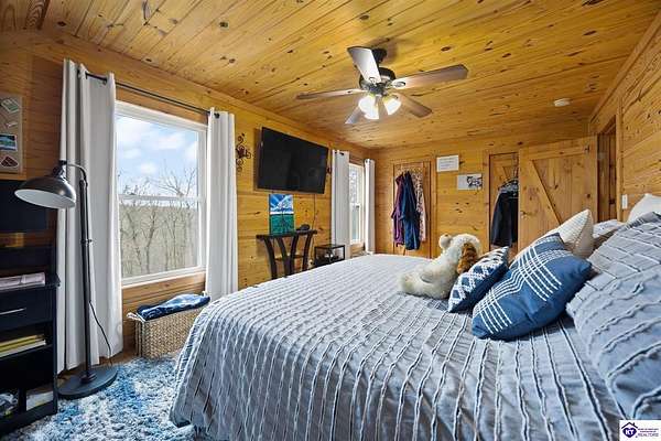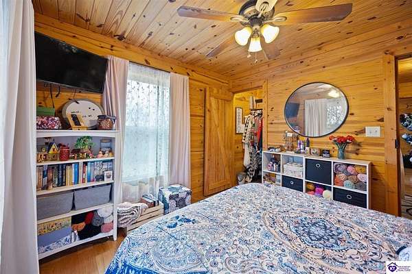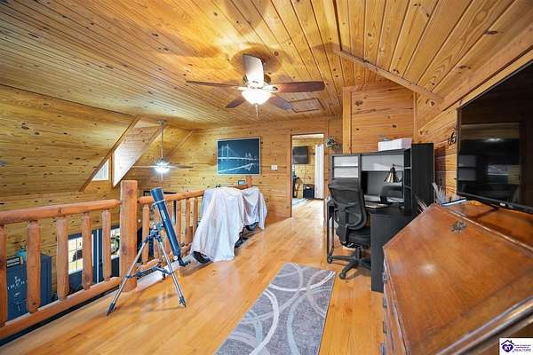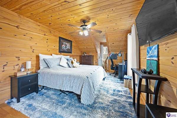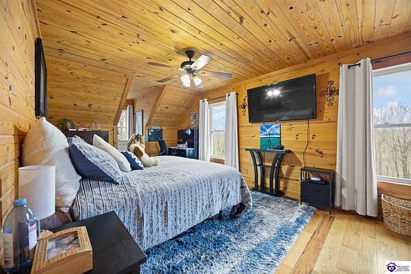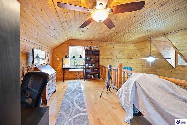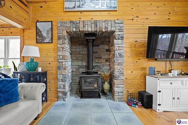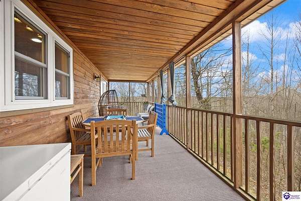Escape to your own private retreat in the heart of Munfordville, KY! Nestled on an incredible 71 wooded acres, this beautiful cabin with wood siding offers the perfect blend of seclusion, comfort, and natural beauty. This 3-bedroom, 2 full bath home features soaring vaulted ceilings and a stunning stacked stone fireplace with chimney, creating a warm and inviting atmosphere. The open living space is filled with natural light and showcases breathtaking views of the surrounding landscape. Upstairs, a loft area provides a peaceful vantage point overlooking the property, while the expansive screened-in back porch—spanning the full length of the home—offers the perfect place to relax and take in the sights and sounds of nature or use as an office space with the fiber internet that is at the property. Accessed by a long blacktop drive behind an electronic security gate at the end of a dead-end county road, this property ensures ultimate privacy. The land itself is truly remarkable, featuring mature hardwoods, three large waterfalls, and an established trail system ideal for ATVs or hiking. The rolling terrain naturally creates prime wildlife corridors, making this a dream property for outdoor enthusiasts, hunters, or anyone seeking a serene escape. For those interested in homesteading, the property is already equipped with a greenhouse and a custom chicken coop. Additional improvements include a 21’ x 31’ detached garage and a 10’ x 20’ shed, providing ample space for storage, hobbies, or equipment. Whether you’re looking for a full-time residence, a weekend getaway, or a private recreational haven, this one-of-a-kind property offers endless possibilities.