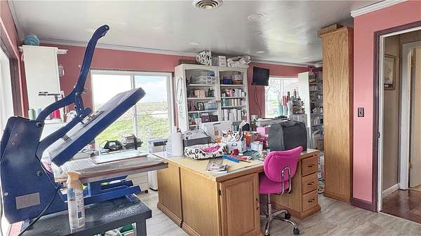 Nestled where the Bighorn Mountains dominate the skyline and the horizon stretches further than a Montana tall tale, this sprawling brick rancher offers a lifestyle of rugged elegance and total quiet. Resting on over 42 hilly acres west of Hardin, this 1965 masterpiece is built like a fortress and offers a wrap-around experience of Big Sky country that makes a standard backyard look like a postage stamp. A natural, year-round stream meanders through the acreage, providing a permanent water source for the local wildlife. With dual fireplaces to keep things cozy and central air for those high-desert summers, this property ensures your only nosy neighbors have four legs and fur. The home's crown jewel is a massive converted recreation room, a space so cavernous it serves as the perfect sanctuary for your large and loud hobbies. It is a rare slice of paradise where the privacy is absolute.