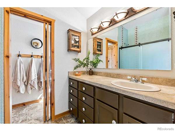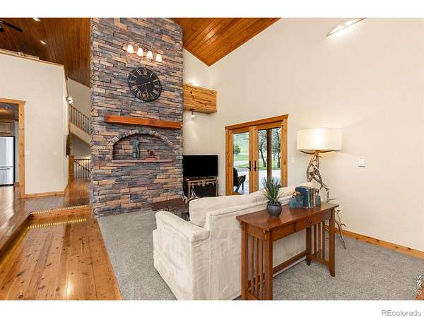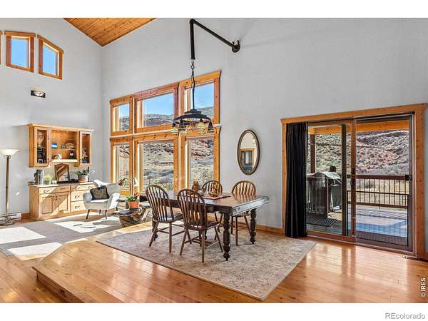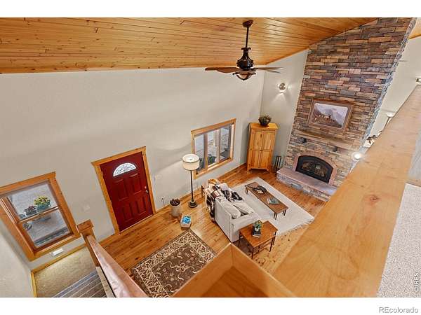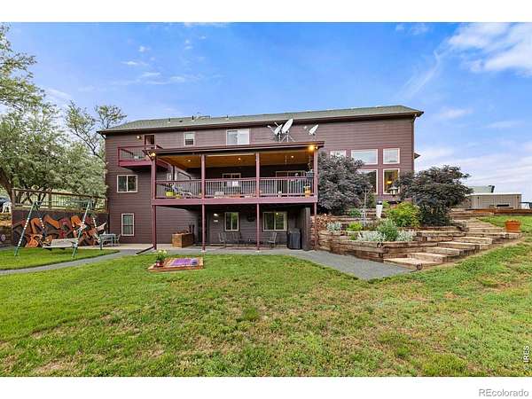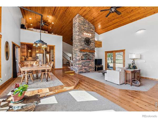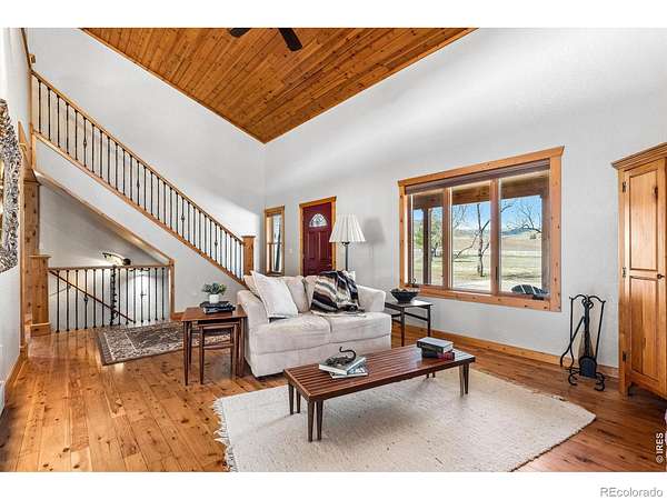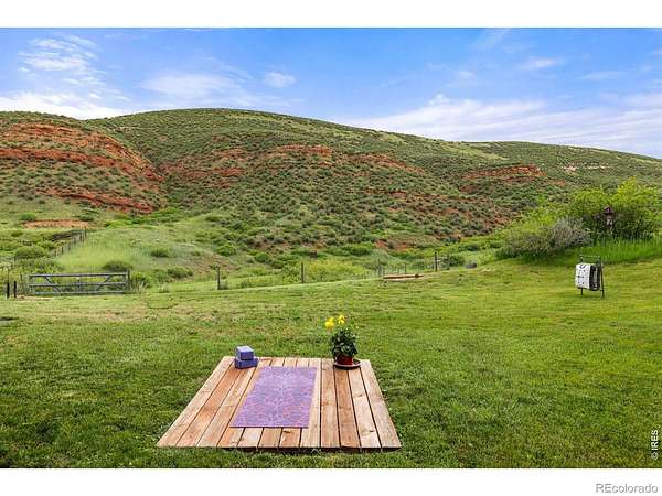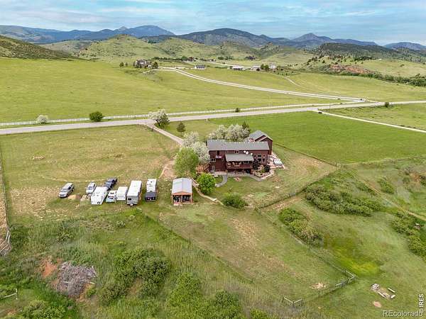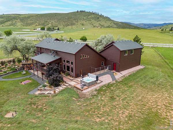 Welcome to your private Colorado retreat, perfectly positioned among the breathtaking Red Bluffs. Set on 20 expansive acres just minutes from the sparkling waters of Carter Lake, this custom-built four-bedroom, three-bath home offers a rare blend of luxury, privacy, and versatility. Step inside to an open-concept layout designed for both everyday living and effortless entertaining. Soaring ceilings and expansive picture windows flood the home with natural light, showcasing rich wood finishes, stunning views, and a hand-crafted double-sided stone fireplace that anchors the main living spaces. The gourmet kitchen is a true centerpiece, featuring stainless steel appliances, beautiful cabinetry, and ample space to gather. Whether hosting or enjoying a quiet evening at home, the seamless flow between kitchen, dining, and living areas creates a warm and inviting atmosphere. Designed with flexibility in mind, the walk-out basement offers a fully equipped private apartment with its own entrance-ideal for multigenerational living, guests, or income potential. Outdoor living shines with an oversized covered patio, perfect for entertaining or simply soaking in the peaceful surroundings and sweeping landscape. The oversized three-car garage provides plenty of room for vehicles, toys, and gear, plus an unfinished studio space above-ready for your vision. With zoning that allows for a secondary residence, this property presents endless opportunities-build a guest home, create a workshop or barn, or expand your investment potential. Whether you're searching for a serene escape, room to grow, or a home that offers unmatched flexibility, this exceptional property delivers it all-just a short drive to Estes Park and Rocky Mountain National Park.