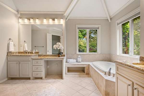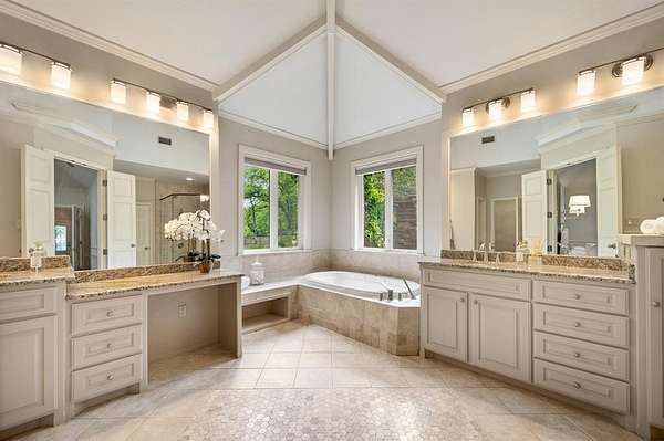 - Built-In Features, Chandelier, Decorative Lighting, Double Vanity, Kitchen Island, Loft, Natural Woodwork, Vaulted Ceiling(s), Walk-In Closet(s), Wet Bar