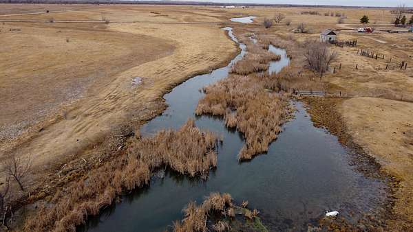 The property features two separate creeks that converge on the tract, creating an outstanding slough and creek system that provides consistent open water and habitat throughout the entire waterfowl season. Ducks utilize the slough system season-long, while Canada geese frequent the surrounding pastures and creek corridors for daily loafing, offering truly world-class decoying opportunities.