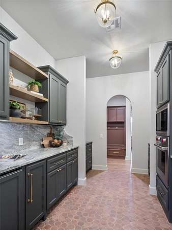 Welcome to this magnificent Spanish Revival estate nestled on 5 acres of pristine wooded land in Edmond Schools. This property seamlessly blends the elegance of Spanish architecture with modern luxury amenities. As you step inside, you'll be captivated by the expansive living room featuring a double-sided fireplace that opens to a cozy lounge area, creating a warm and inviting atmosphere for the entire family. The kitchen is a culinary dream come true, boasting a remarkable 60-inch commercial stove and a large central island, perfect for casual dining.The main residence offers 5 ensuite bedrooms, ensuring privacy and comfort for all family members. Additionally, a separate 763-square-foot guest home with its own bedroom, living area, and kitchenette is perfect for visitors or as a retreat space.This is included in the square footage. The grand groin ceiling in the entryway and the entertainment area with a wet bar in the game room are ideal for hosting guests and celebrating special moments. Movie night, anyone? We have a dedicated theater room for just that! The outdoor patio is an extension of indoor living, with a spacious layout, a firepit, and an outdoor kitchen, making it perfect for family gatherings and social events.The stunning pool is a sight to behold, and the generous green space offers endless opportunities for outdoor activities.The master suite is a serene retreat with its own fireplace, a walk-around shower, a freestanding tub, and a gigantic closet that will delight any fashion enthusiast. Additionally, there's a butler's pantry for easy entertaining and catering.This residence is truly exceptional and offers a luxurious lifestyle amidst nature's beauty. Come and discover the unique charm and elegance of this Spanish-inspired property! With 6 bedrooms including the guest home and a 6 car garage,this home has room for everyone! Equestrian lover?Horses, barns and workshops allowed.