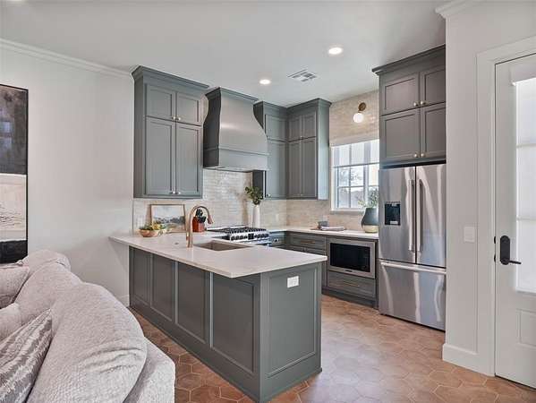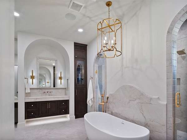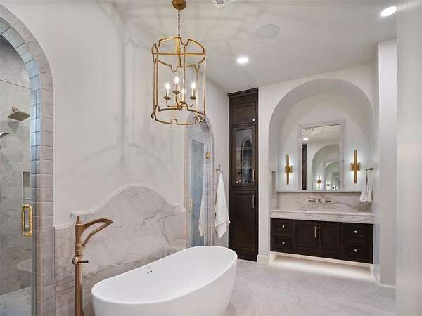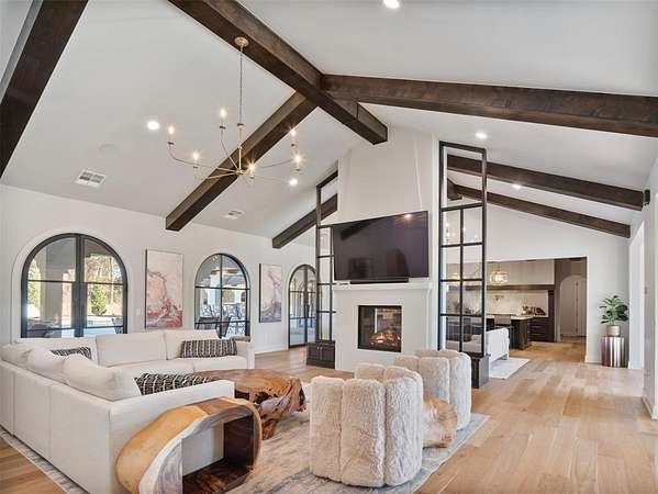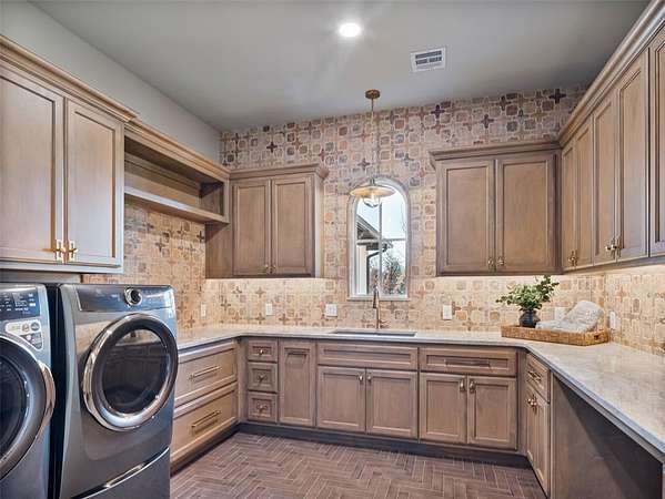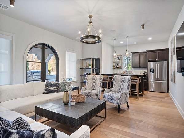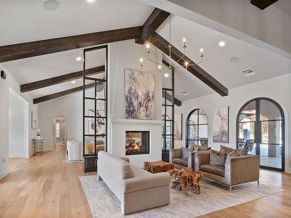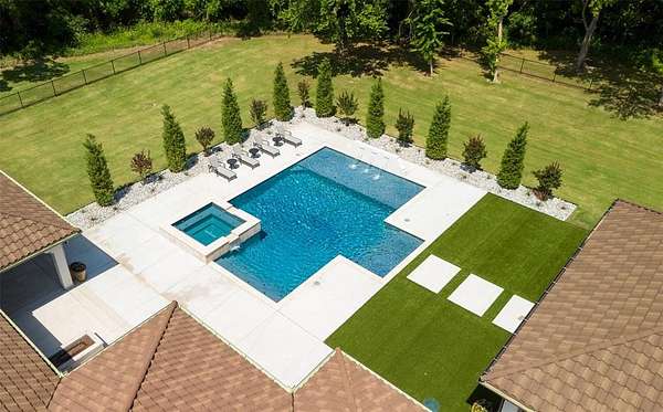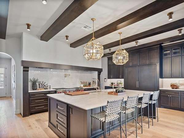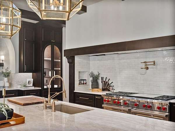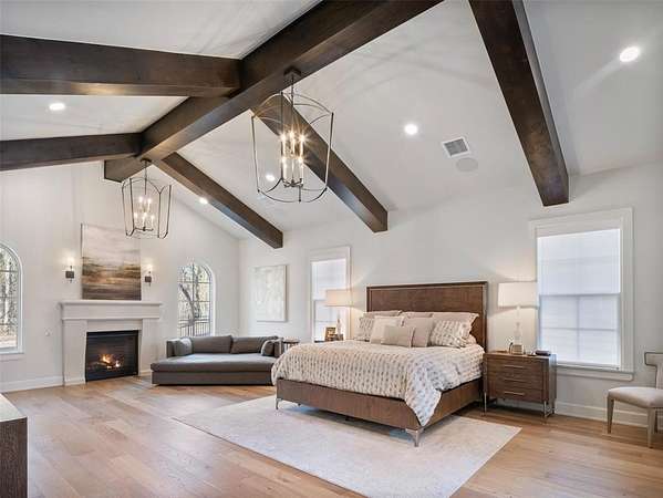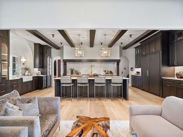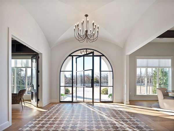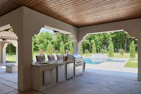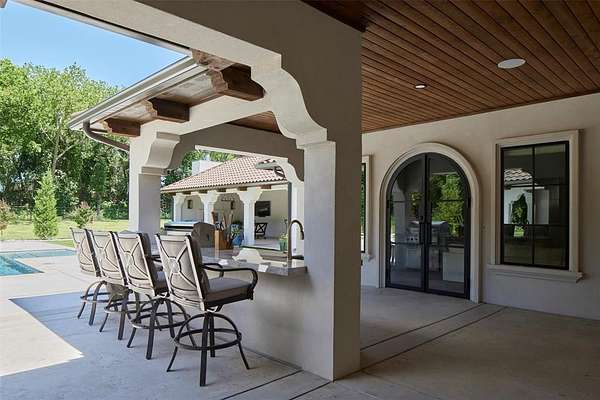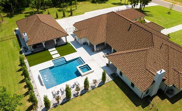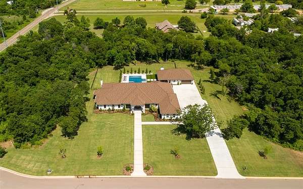 Welcome to this magnificent Spanish Revival estate nestled on 5 acres of pristine wooded land in Edmond Schools. This property seamlessly blends the elegance of Spanish architecture with modern luxury amenities. As you step inside, you'll be captivated by the expansive living room featuring a double-sided fireplace that opens to a cozy lounge area, creating a warm and inviting atmosphere for the entire family. The kitchen is a culinary dream come true, boasting a remarkable 60-inch commercial stove and a large central island, perfect for casual dining.The main residence offers 5 ensuite bedrooms, ensuring privacy and comfort for all family members. Additionally, a separate 763-square-foot guest home with its own bedroom, living area, and kitchenette is perfect for visitors or as a retreat space.This is included in the square footage. The grand groin ceiling in the entryway and the entertainment area with a wet bar in the game room are ideal for hosting guests and celebrating special moments. Movie night, anyone? We have a dedicated theater room for just that! The outdoor patio is an extension of indoor living, with a spacious layout, a firepit, and an outdoor kitchen, making it perfect for family gatherings and social events.The stunning pool is a sight to behold, and the generous green space offers endless opportunities for outdoor activities.The master suite is a serene retreat with its own fireplace, a walk-around shower, a freestanding tub, and a gigantic closet that will delight any fashion enthusiast. Additionally, there's a butler's pantry for easy entertaining and catering.This residence is truly exceptional and offers a luxurious lifestyle amidst nature's beauty. Come and discover the unique charm and elegance of this Spanish-inspired property! With 6 bedrooms including the guest home and a 6 car garage,this home has room for everyone! Equestrian lover?Horses, barns and workshops allowed.