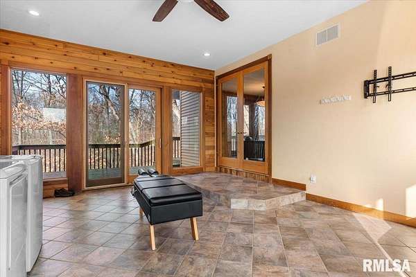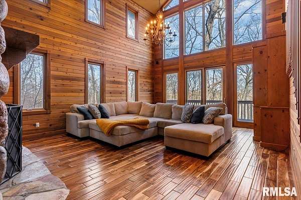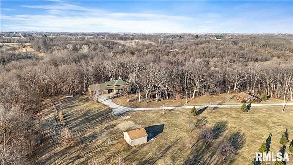 Looking for privacy, acreage, and room to truly live? Let's take a walk through this beautiful home nestled on 9.89 wooded acres. Picture family football games in the flat yard, gardens tucked into the timber, kids flying kites, and evenings around the firepit. There's space here to breathe. Step inside to an open floor plan anchored by a stunning custom stone fireplace, which you can enjoy from both the kitchen and living room, all while taking in peaceful wooded views. The kitchen offers a walk-in pantry, abundant cabinetry, granite countertops, and a large island made for gathering. Upstairs, the primary suite continues the stone fireplace detail, creating a cozy retreat. Relax in the jetted tub or oversized walk-in shower. A dedicated room is ready to be finished as your custom sauna. The suite also features two spacious walk-in closets. Two additional rooms provide flexibility for a nursery, office, craft room, or bonus space. The walk-out basement offers a family room with outdoor access, two bedrooms with egress windows, a third non-egress rm, and a full bath ideal for guests or extra living space. Not a fan of stairs? There's a whole-house elevator providing access to every level-though the current owner prefers the stairs and has never used it. As we walk outside through the 3-car attached garage you will see the whole-house generator, oversized detached garage, and an additional outbuilding ready for your imagination. COMING SOON CALL TO GET ON THE LIST TO SEE SOON