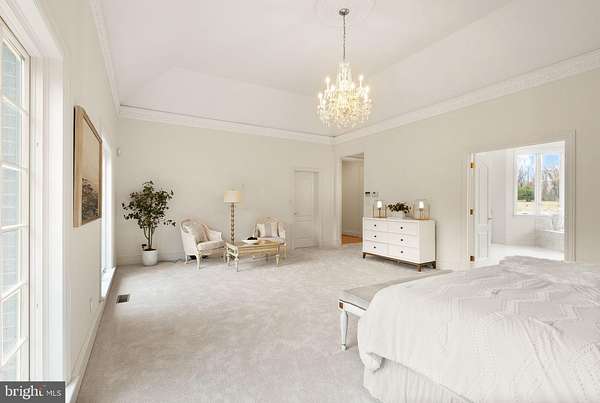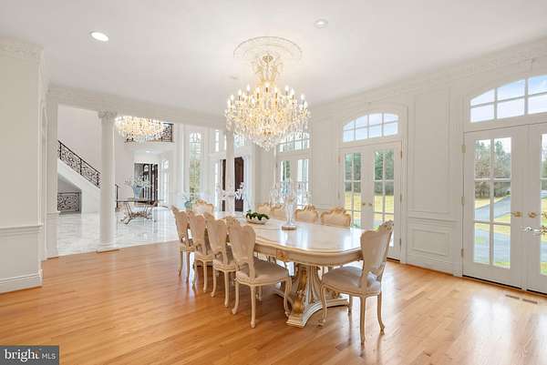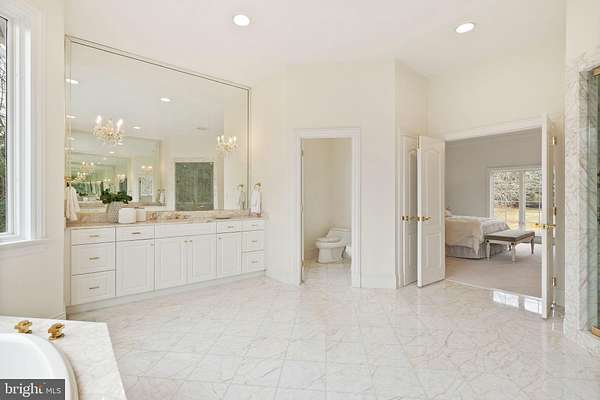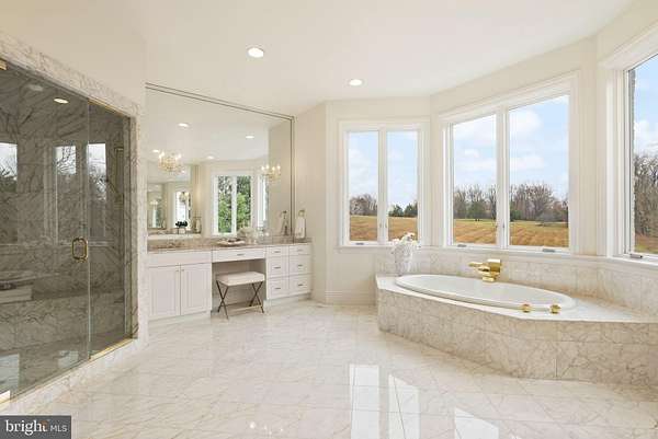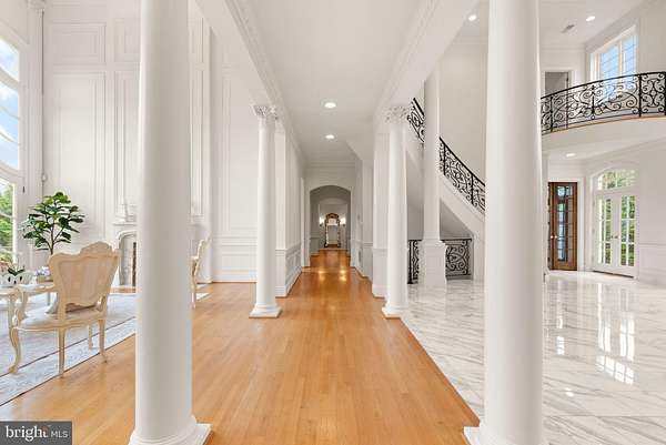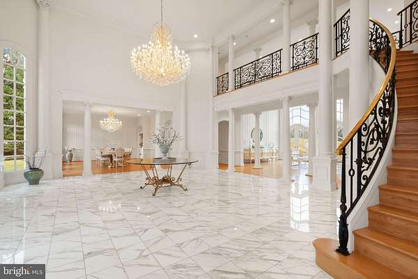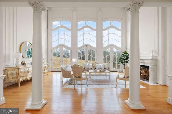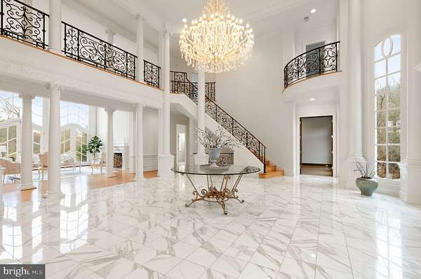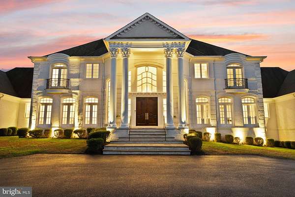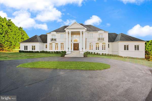 Private 4+ acre estate designed by renowned architect John Neufeld, offering over 12,000 sqft of refined living space and two attached garages with parking for four. A grand, gated entrance leads to the stately residence set back from the road, with an impressive columned facade and elegant oversized wood doors that open into a soaring 2-story marble foyer. From the moment you step inside, your eye is drawn straight through to the rear wall of windows showcasing gorgeous views of the grounds-emphasizing the estate's privacy and scenic surroundings. Custom craftsmanship is evident throughout, from iron balustrades and intricate crown and wall moldings to imported Italian marble. The main-level primary wing is a true retreat, featuring two oversized custom walk-in closets and a spa-inspired bath with Italian marble floors, dual vanities, an Italian marble walk-in shower with four shower heads, a soaking tub, and a private water closet. The upper level offers four additional bedrooms and three full baths, including two en-suites. Juliet balconies and Italian marble baths elevate the space and provide excellent flexibility for guests or family living. At the heart of the home, the dramatic living room impresses with a 20-foot ceiling, expansive wall of windows, gas marble fireplace, and beautiful picture-frame moldings. A handsome main-level office and a comfortable family room with a marble wood-burning fireplace create inviting spaces for everyday living. The formal dining room with French doors is ideal for entertaining, while the gourmet kitchen is perfectly equipped for both chefs and home cooks, featuring a Thermador 6-burner + grill gas cooktop, oversized Sub-Zero refrigerator, double wall ovens, built-in microwave, large center island with prep sink, and a spacious breakfast room that opens to the rear patio. Dual staircases to both the upper and lower levels, with the lower level offering an exceptional opportunity-fully framed with a plumbing rough-in, large bay window, walk-out rear access, and a footprint that can accommodate anything you envision: recreation spaces, a home theater, fitness center, guest suite-the possibilities are endless. Two side-loading garages open into a generous mudroom with a separate entry, laundry area, workstation, abundant storage, coat closet, and an oversized pantry. Additional parking is plentiful, with both a side driveway and a circular driveway. 4-zoned HVAC. Every room offers serene views of the stunning property. This estate is a true Potomac masterpiece!