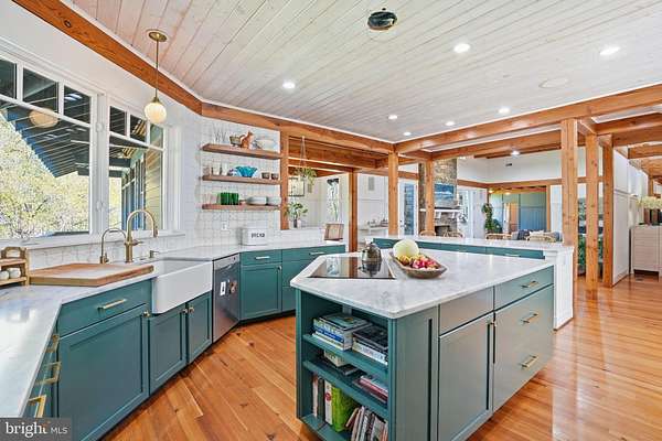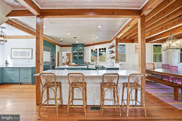 - Breakfast Area, Built-Ins, Butlers Pantry, Combination Kitchen/Dining, Dining Area, Exposed Beams, Family Room Off Kitchen, Gourmet Kitchen, Island Kitchen, Kitchenette, Open Floor Plan, Pantry, Primary Bath(s), Recessed Lighting, Sound System, Stall Shower Bathroom, Studio, Tub Shower Bathroom, Upgraded Countertops, Walk-In Closet(s), Walk-In Shower Bathroom, Water Treat System, Wet/Dry Bar, Window Treatments, Wood Floors