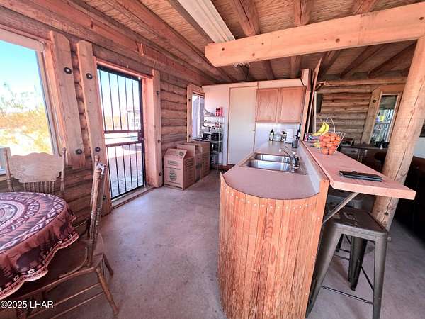 Escape to your own private desert retreat with this charming log cabin in Yucca. Sitting on a quiet corner lot, this cozy 1-bedroom, 1-bath home offers off-grid living at its best with a full solar power system, septic, and water haul setup. The inviting cabin feel is perfect for anyone seeking peace and simplicity surrounded by open desert views, with BLM across the street, the views are endless. A large attached garage provides plenty of room for storage, hobbies, or a workshop. Whether you're looking for a weekend getaway or a year-round homestead, this property offers the perfect blend of comfort, privacy, and self-sufficiency.