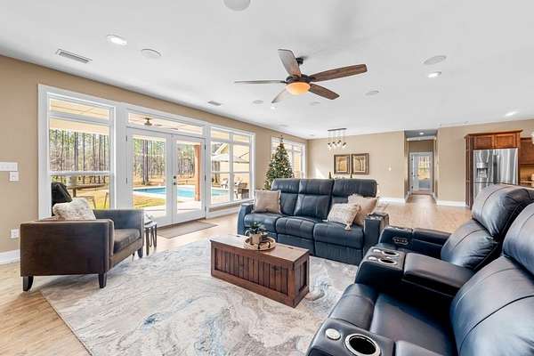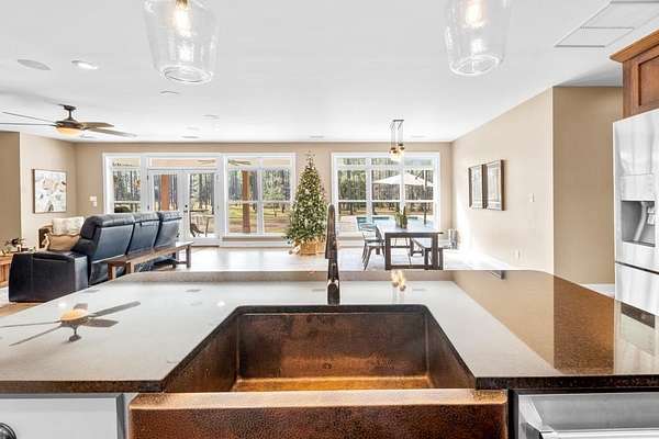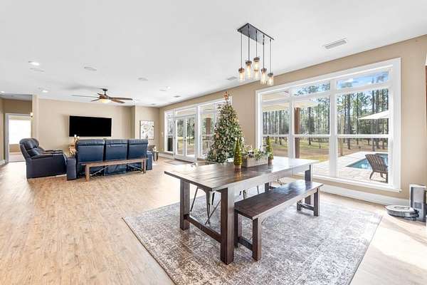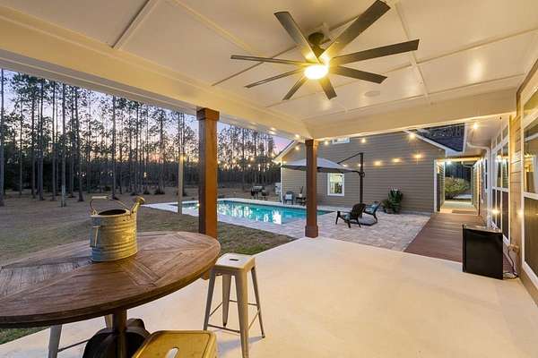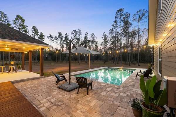 Discover this pristine home setting on 8 private acres within the highly sought-after, gated Tallahassee Ranch Club. The open-concept layout offers three bedrooms and 2.5 baths, thoughtfully designed with recessed lighting, sliding barn doors, and rustic accents that create a serene, welcoming atmosphere. The chef's kitchen features high-end appliances, custom cabinetry, an eat-in bar, and a spacious pantry-perfect for both everyday living and entertaining. The expansive primary suite is a true retreat, boasting a spa-inspired bathroom with a sit-down vanity, a large walk-in shower with bench seating, and three generous walk-in closets. The second bedroom is like a second master with a huge on suite bath. Only 20 min to downtown Tallahassee and 12 miles to your closest Publix and Starbucks. This home gives you enough access to shops and restaurants with peaceful country living! Additional highlights include a generator hookup, irrigation system, fast Starlink Internet, and a saltwater swimming pool. Showings are available by appointment only.