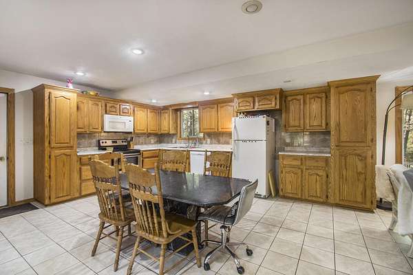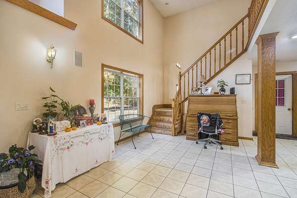 Beautifully set on 5 wooded acres backing onto county land, this 3-bedroom, 2.5-bath home offers space, privacy, and nature in every direction. A vaulted entry with dual staircases makes a grand first impression, leading into an airy open-concept layout with an oversized kitchen, dining area, and family room-perfect for entertaining or gathering with family. Main-level laundry adds everyday convenience, while a large back deck overlooks the peaceful, wooded surroundings. The newly started addition adds over 2,400 + sq. ft., already framed for a spacious master suite and kitchen, complete with its own private entrance-ideal for guests or extended family. The attached two-stall garage has been enclosed as an extra room but could easily be restored. Enjoy quiet country living just minutes from Holland, Saugatuck, and Lake Michigan!