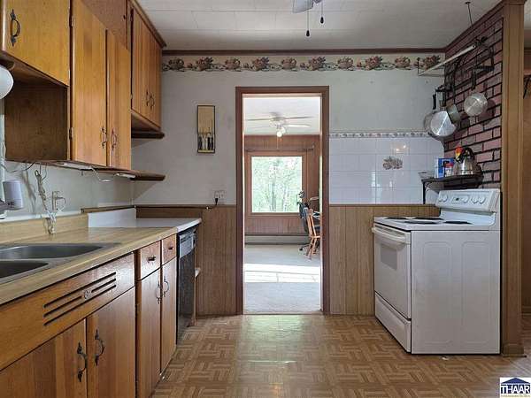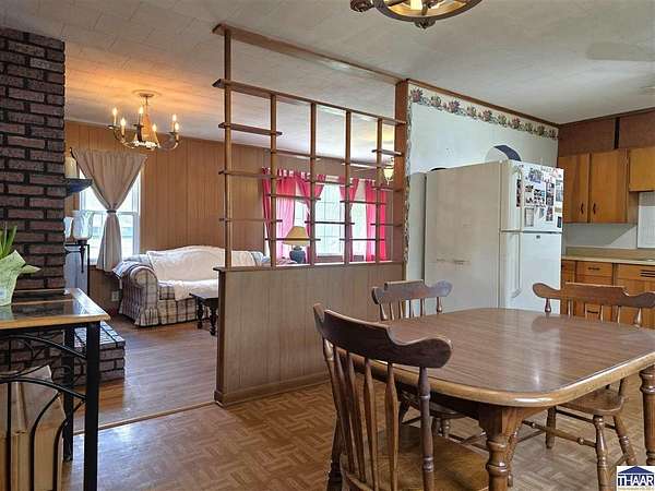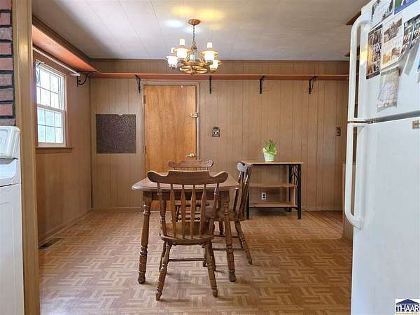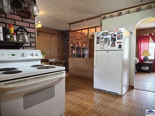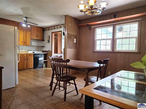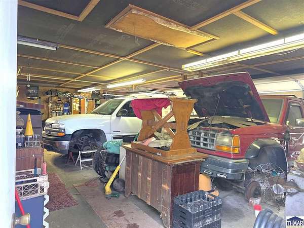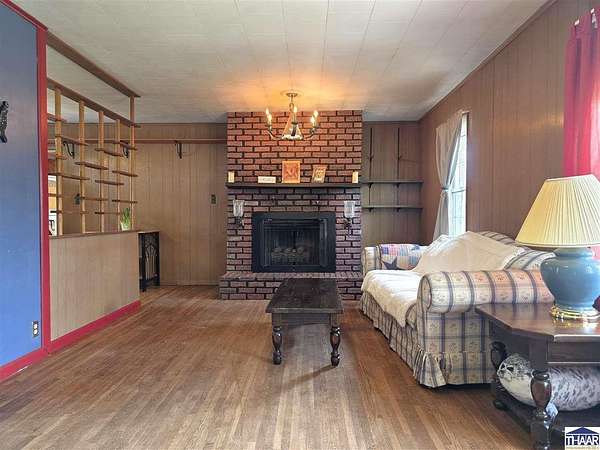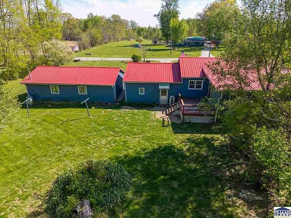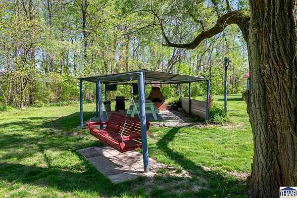 Enjoy the best of country living with this fun and versatile rural property in West Terre Haute, located in the desirable Fayette school district! Situated on 5.13 acres, this property offers a perfect blend of open space and natural beauty, with approximately 3 acres of grass and 2 acres of scenic wooded ravine. Car enthusiasts, hobbyists, or those needing extra storage will appreciate the incredible 5 garage bays, including a heated attached garage with an air compressor that stays. The property also includes multiple outbuildings, a small pole barn, greenhouse, and a charming picnic shelter complete with a fireplace ideal for entertaining or relaxing outdoors. The home features 3 bdrs and 2 full baths, including a primary bath with updated flooring and faucets. You’ll love the warm and inviting living room with hardwood floors and a gas log fireplace, while the spacious dining area easily accommodates a large table perfect for gatherings. Additional flexible space with a great view of the pretty backyard can serve as a home office or family room to fit your needs. Additional highlights include a whole-house surge protector, generator wiring with included mobile generator, and a dry koi pond ready to be restored and enjoyed. The home is all-electric but already plumbed for gas, with gas available across the street. To top it off, the seller is including a mower, making it even easier to maintain this beautiful property. A unique opportunity with space, functionality, and plenty of character.