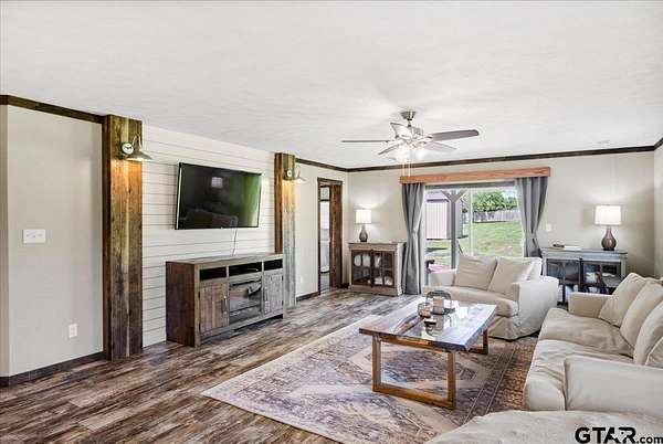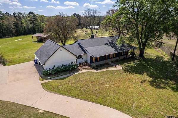 18.169 acre gated property in East Texas offering a rare combination of multiple residences, functional improvements, and recreational features. Designed for flexibility, this property is ideal for multi-generational living, income potential, or a private retreat with room to expand. The main home features 3 bedrooms, 3 full bathrooms, and updated interior finishes, with flexible living and dining spaces. A second residence offers 3 bedrooms, 2 bathrooms, and an open-concept layout—ideal for extended family or rental use. The property is well-equipped with multiple outbuildings, including two shops with water and electricity. One shop includes additional living space with bedrooms and a full bath, while the larger 2,000 SF shop offers the potential to be finished out as a third residence, workspace, or business use. A small barn and pole barn provide additional utility for livestock, storage, or equipment. The 18+ acres offer a balanced mix of open pasture and mature woods, with a centrally located track for recreational or equestrian use complete with arena lighting. Additional features include RV hookups, solar panels for energy efficiency, and a gated entrance with concrete drive access. Conveniently located near Tyler’s amenities while maintaining privacy and usable acreage, this property presents a unique opportunity with multiple use options.