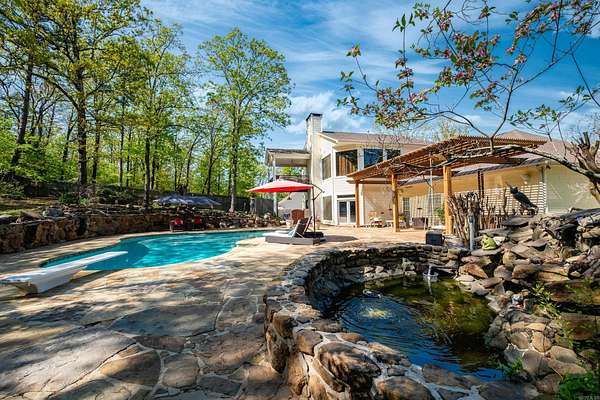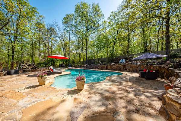 Come enjoy this private 2 acre oasis with pool! The home offers the open concept kitchen, great room with Fireplace, dining area, and sitting area which is perfect for entertaining. The main level has 3 Bedrooms, 2.5 baths, plus office. Two of these bedrooms are en-suites and could be a primary on the main level or perfect for in-law suite. Upstairs is the wonderful over-sized primary suite w/ fireplace, panoramic view overlooking the pool. Walk-thru glass block shower, 2 closets & extra washer/dryer. Chef's custom kitchen- double island, granite, SS appliances, Jenn-Aire gas 4 burner + grill and double wall ovens. Amenities include being close to Pinnacle Mountain Park, Maumelle State Park, Two Rivers Park, Bo Brooks Winery & Pumpkin Patch, WestRock Landing and P. Allen Smith Farm-Moss Mountain. You can walk to Leiva's Coffee Roastery, Natural Steps Sports Complex, and Hoop Life Gym.
