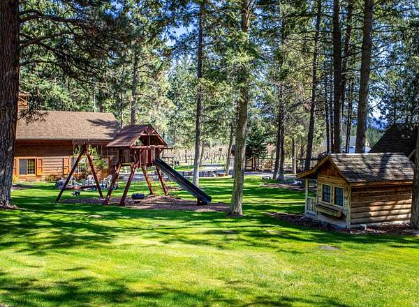 Elk Glen Retreat, a rustic Montana property, rich with history! This unique 40acre property offers Flathead Lake views, Swan Mountain views, and 6 vintage custom-built cabins loaded with rustic character. Each cabin is connected by natural walking paths and offers updated mountain interiors such as natural stonework, reclaimed wood, one-of-a-kind fixtures, and artisan sculptures. There are 3 one-bedroom cabins, 2 studio cabins, and a 2-bedroom two level cabin. Each cabin is ready for guests with turnkey furnishings, mini kitchens including modern appliances, and comfortable bathrooms. Specifically, the Elk Cabin (1 bdrm) was featured on the cover of Log Home Living! In addition, Elk Glen Retreat provides unlimited amenities such as an impressive large green house, a fishing pond, a free-standing tack room, a playground area, a chicken coop, an animal shelter, perimeter fencing, and other outbuildings. Additionally, there is a substantial barn building that houses a heated shop/garage and another living quarters perfect for a groundskeeper or manager. Elk Glen Retreat is a special secluded property that sincerely provides all the rustic charm that Montana could possibly offer. Whether you prefer to gather a large group or keep this as your private family retreat, it is simply a 5-minute drive to the renowned Village of Bigfork, 30 minutes to the Glacier National Airport, and only an hour to Glacier National Park's western entrance!!